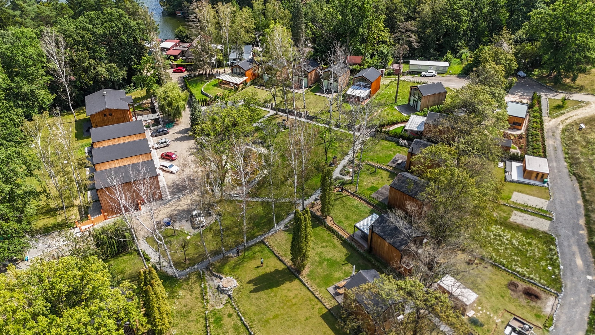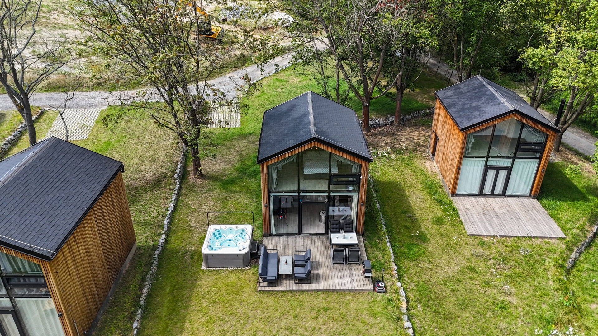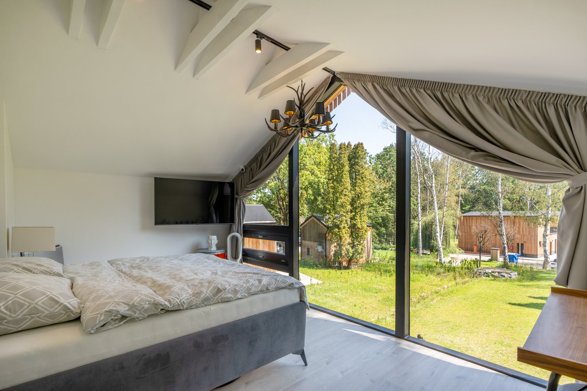 Chata je provedena v moderním, vkusně minimalistickém pojetí, které umožňuje nízkonákladové bydlení s minimálními nároky na údržbu. Materiálové řešení kombinuje dřevěný fasádní obklad, velkoformátová prosklení na čelních fasádách a střešní krytinu z bonnského šindele. Střídmý design čerpá z přírodních materiálů a navazuje na okolní přírodu. Velkoformátová čelní skla umožňují dokonalé prosvětlení vnitřních prostor a otevřené výhledy do okolí, což rezidentům přináší uklidňující pocit, že i doma jsou přirozenou součástí přírody.