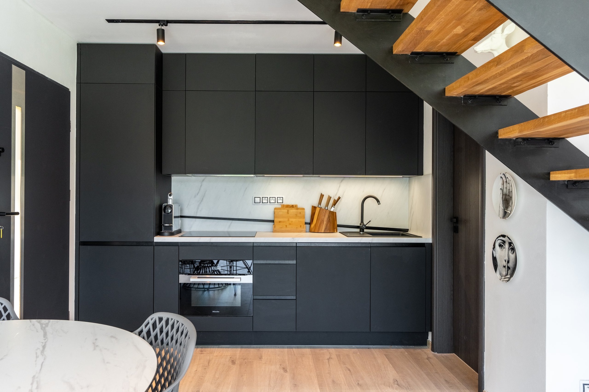 V přízemí se nachází prostorný kuchyňský kout propojený s obývacím pokojem o celkové rozloze 25 m². Součástí přízemí je také koupelna o rozloze 4 m². Druhé nadzemní podlaží disponuje dvěma podkrovními pokoji. První pokoj má rozlohu 13,5 m² a druhý 8,4 m², což poskytuje dostatek prostoru pro pohodlné bydlení.
