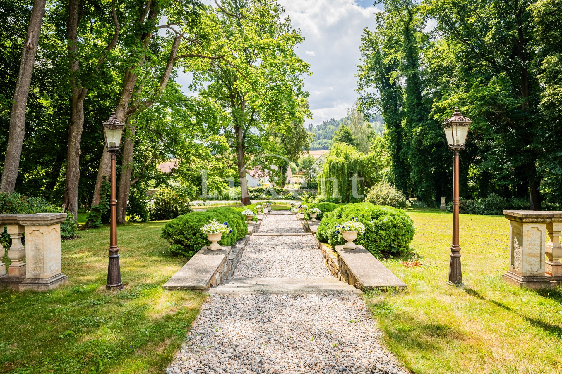 Tří a půl hektarový park se dvěma rybníky krášlí vzrostlé kaštany, lípy, javory, borovice, tisy, jasany, břízy, cedry, platany, vrby, akáty, duby, buky, cedry, olše, buxusy, rododendrony, ginkgo biloba a zerav.