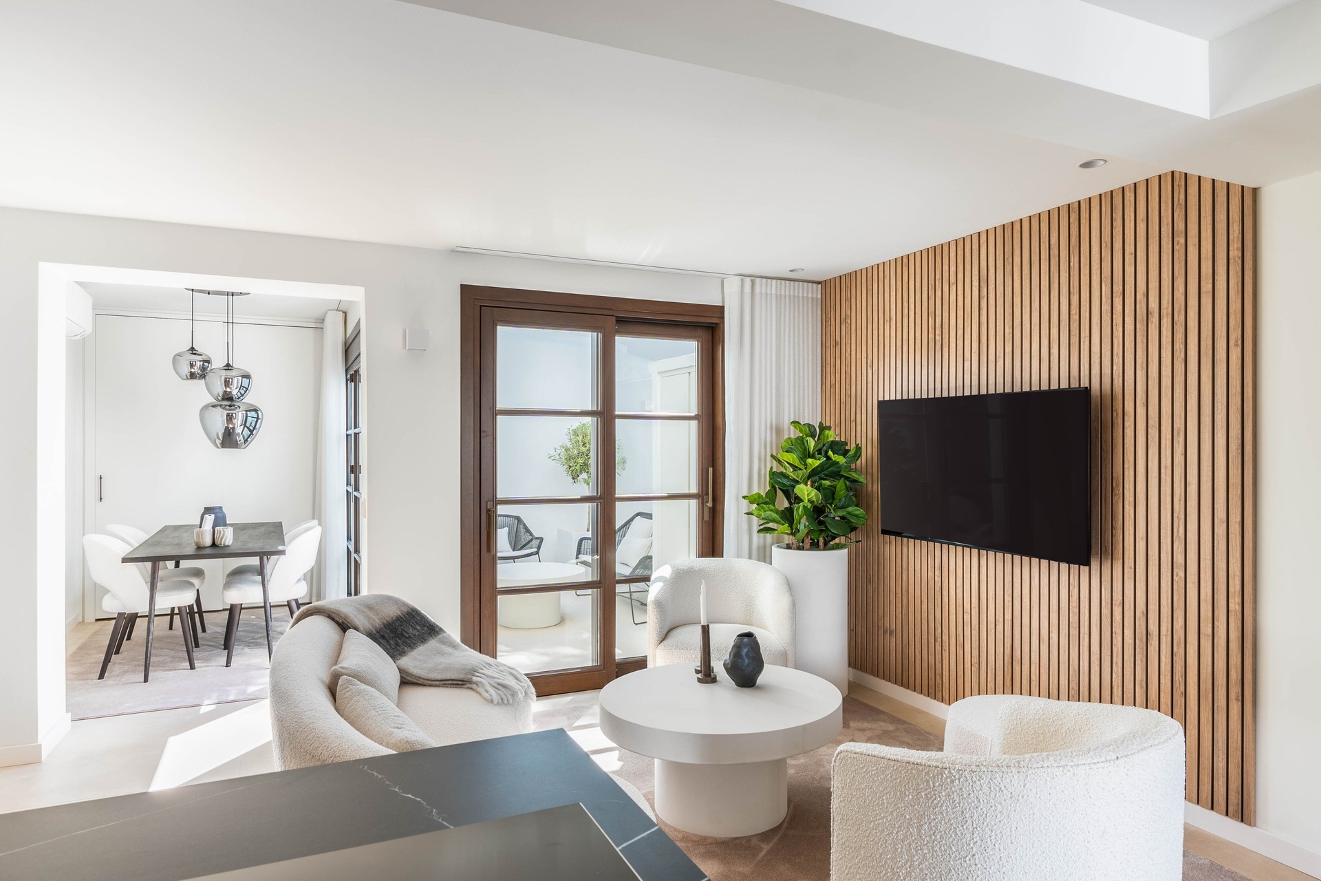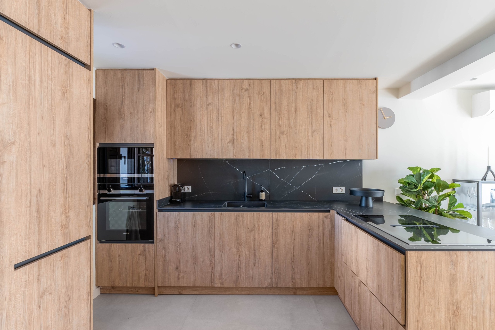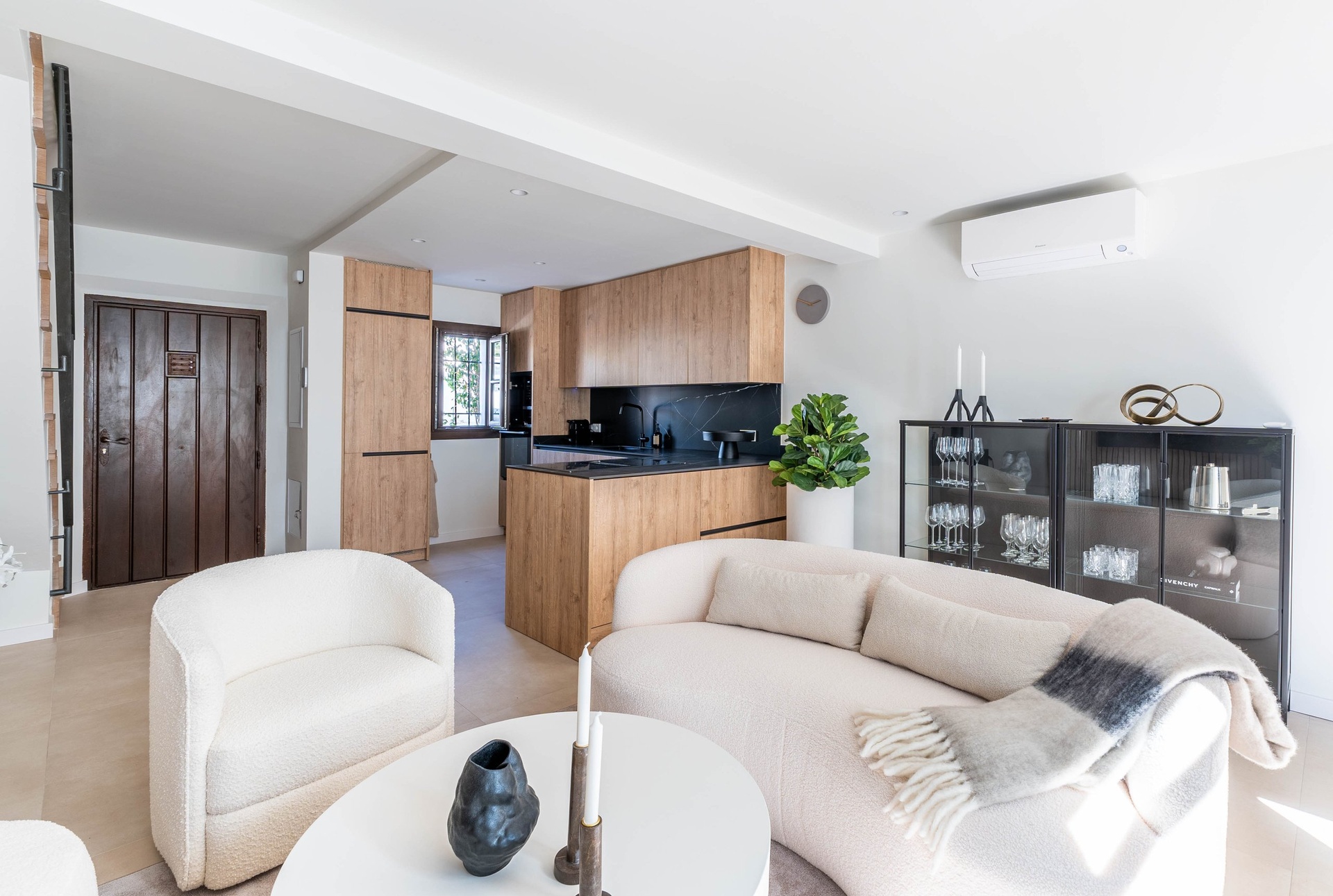 Interiér nemovitosti kombinuje moderní prvky s tradičním andaluského stylem. Stylová kuchyně je vybavena moderními spotřebiči Siemens a působivými černými mramorovými pracovními deskami, která plynule přechází do útulného obývacího pokoje s nábytkem na míru. Z jídelního koutu se dostanete na prostornou terasu, ideální místo pro relaxaci a vychutnávání slunečného španělského klimatu.
