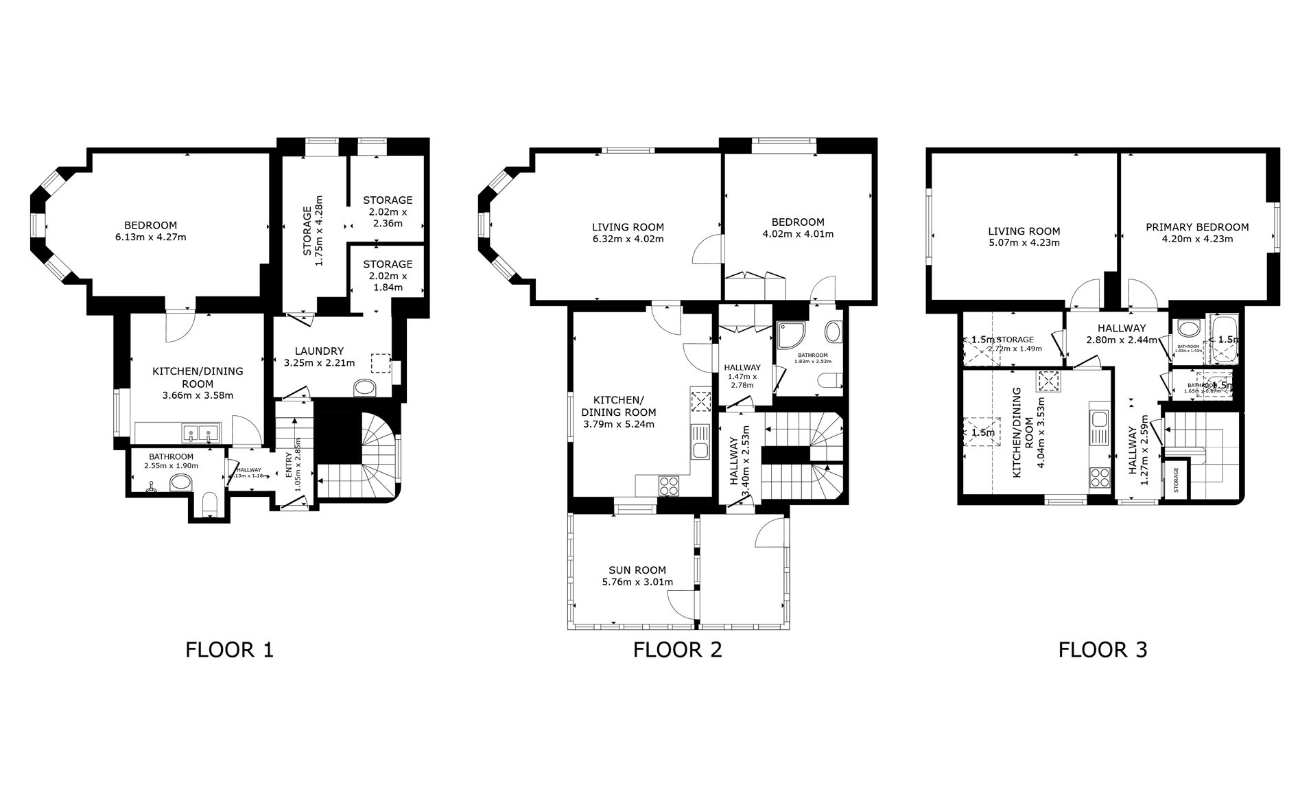 Dům má tři nadzemní podlaží propojená vnitřním schodištěm a v současnosti každé z nich slouží jako samostatná bytová jednotka.