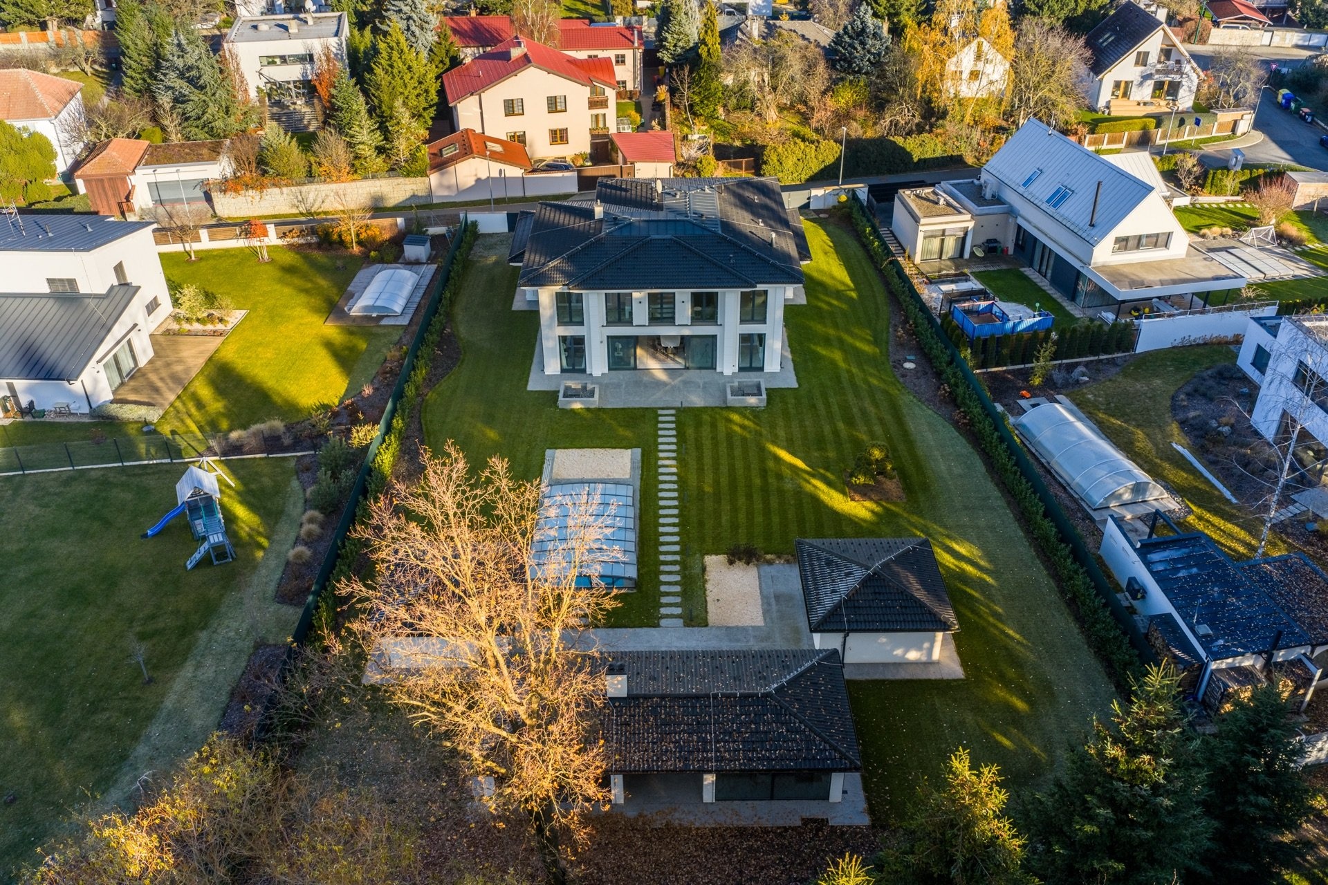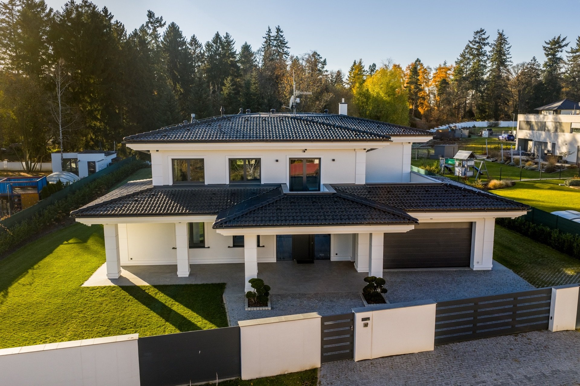 Nabízíme k prodeji exkluzivní vilu v jedné z nejprestižnějších rezidenčních lokalit – v Průhonicích u Prahy. Elegantní Villa Lumière, o celkové užitné ploše 590 m² s pozemkem 2 287 m², je situována jen pár kroků od Průhonického parku a je doslova domovem plným světla. Nadčasová architektura vznikla pod dohledem renomovaného architekta a designéra. Spojuje špičkové materiály, precizní řemeslné zpracování a harmonický interiér, který je založený na kombinaci přírodních materiálů, jako je dřevo, sklo a kámen.