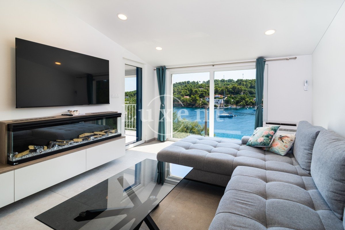 Nabízíme k prodeji nádherně zrekonstruovaný dům v první řadě u moře, přímo u malebné zátoky s pláží. Dům o celkové obytné ploše 125 m² se rozkládá na dvou podlažích a nabízí okouzlující výhled na moře i soukromý přístup k vodě.