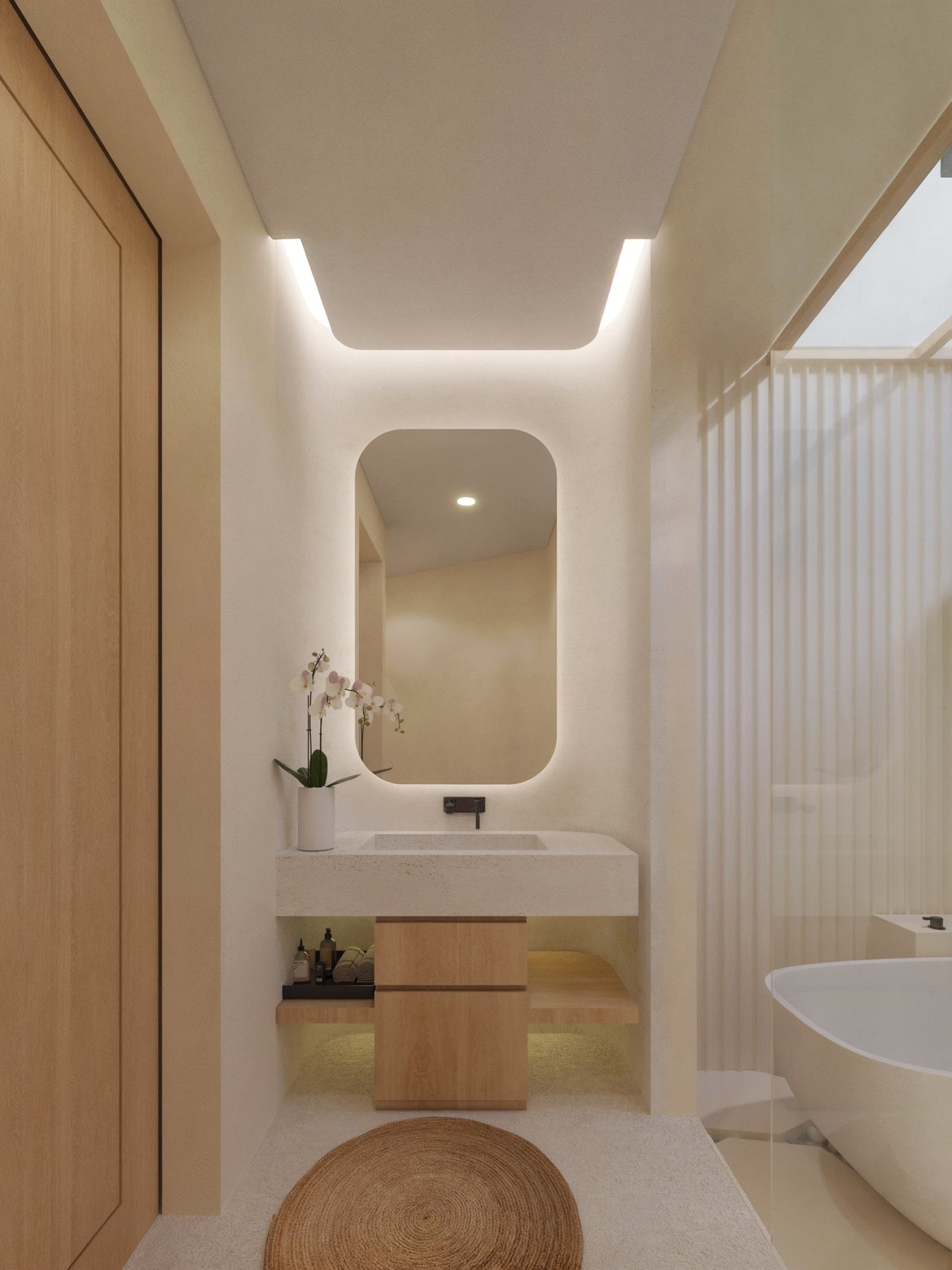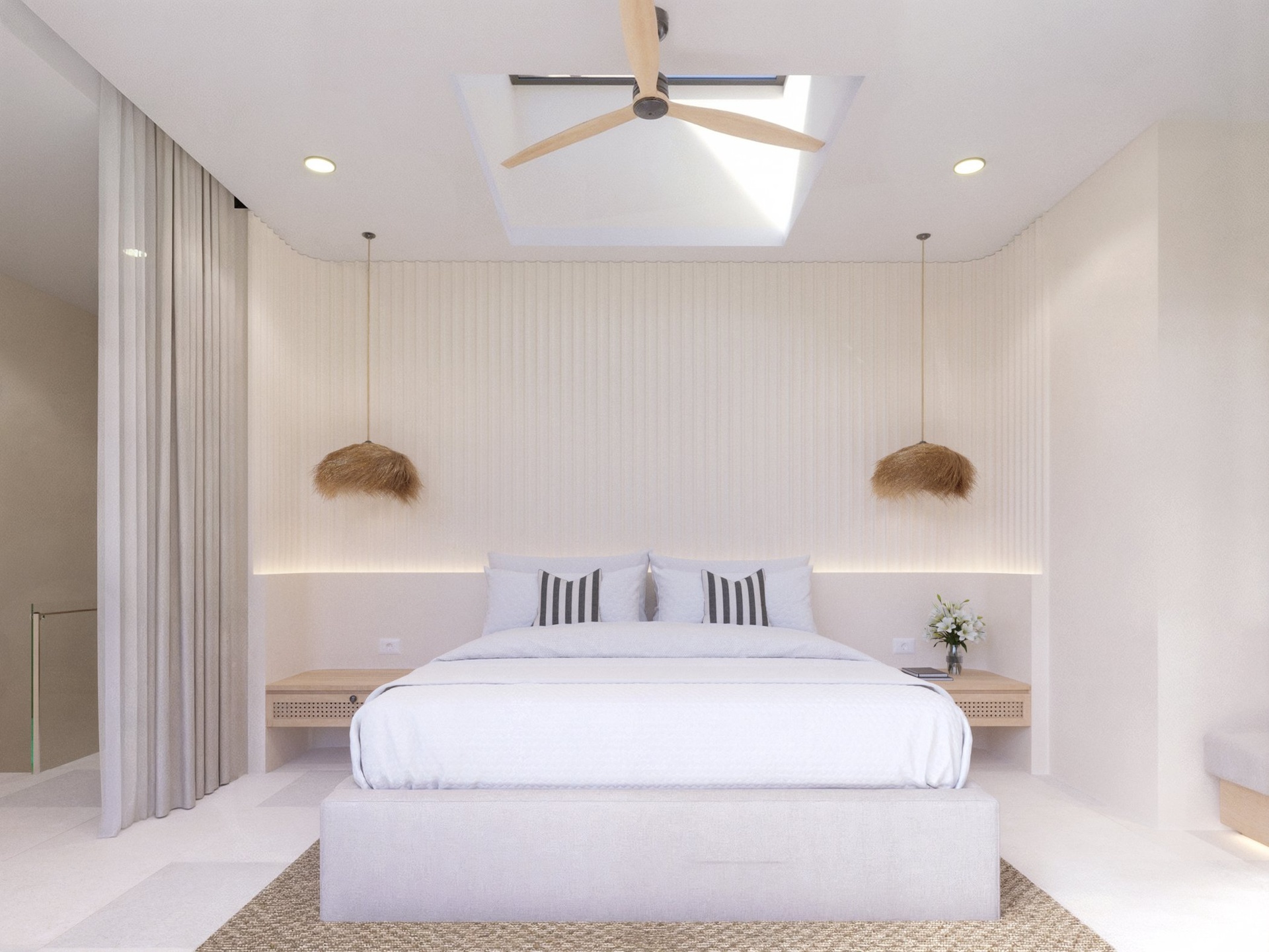 Vily jsou navrženy v elegantním moderním stylu s důrazem na funkční dispozice a maximální komfort každodenního užívání. Dvoupodlažní vila nabízí jednu hlavní ložnici, druhý menší pokoj vhodný jako pracovna, dvě koupelny, soukromý přelivný bazén, terasu z teakového dřeva a balkon s výhledem do zeleně. Dispozice dále zahrnuje otevřený obývací prostor propojený s plně vybavenou kuchyní.