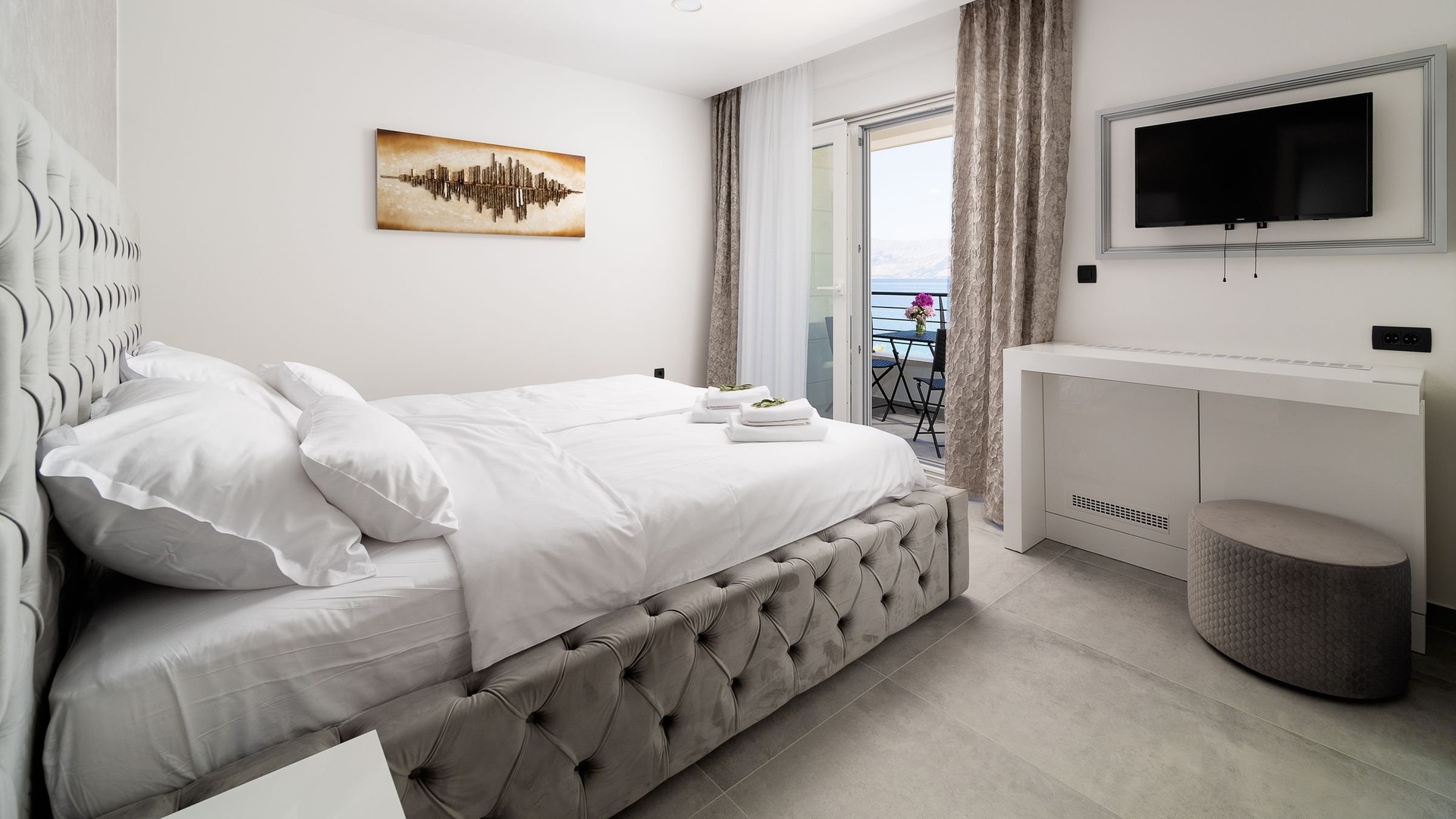 V suterénu se nachází místnost určená pro volnočasové aktivity, prostorná tělocvična a elegantní koupelna. Přízemí domu tvoří světlý, moderně zařízený obývací pokoj propojený s kuchyňským koutem, jedna ložnice, další koupelna a tři terasy – z toho dvě částečně kryté, ideální pro klidné chvíle i letní večery s přáteli. V prvním patře se nachází čtyři ložnice s vlastními koupelnami a dva balkony, které nabízejí panoramatické výhledy na moře a okolní pobřeží.