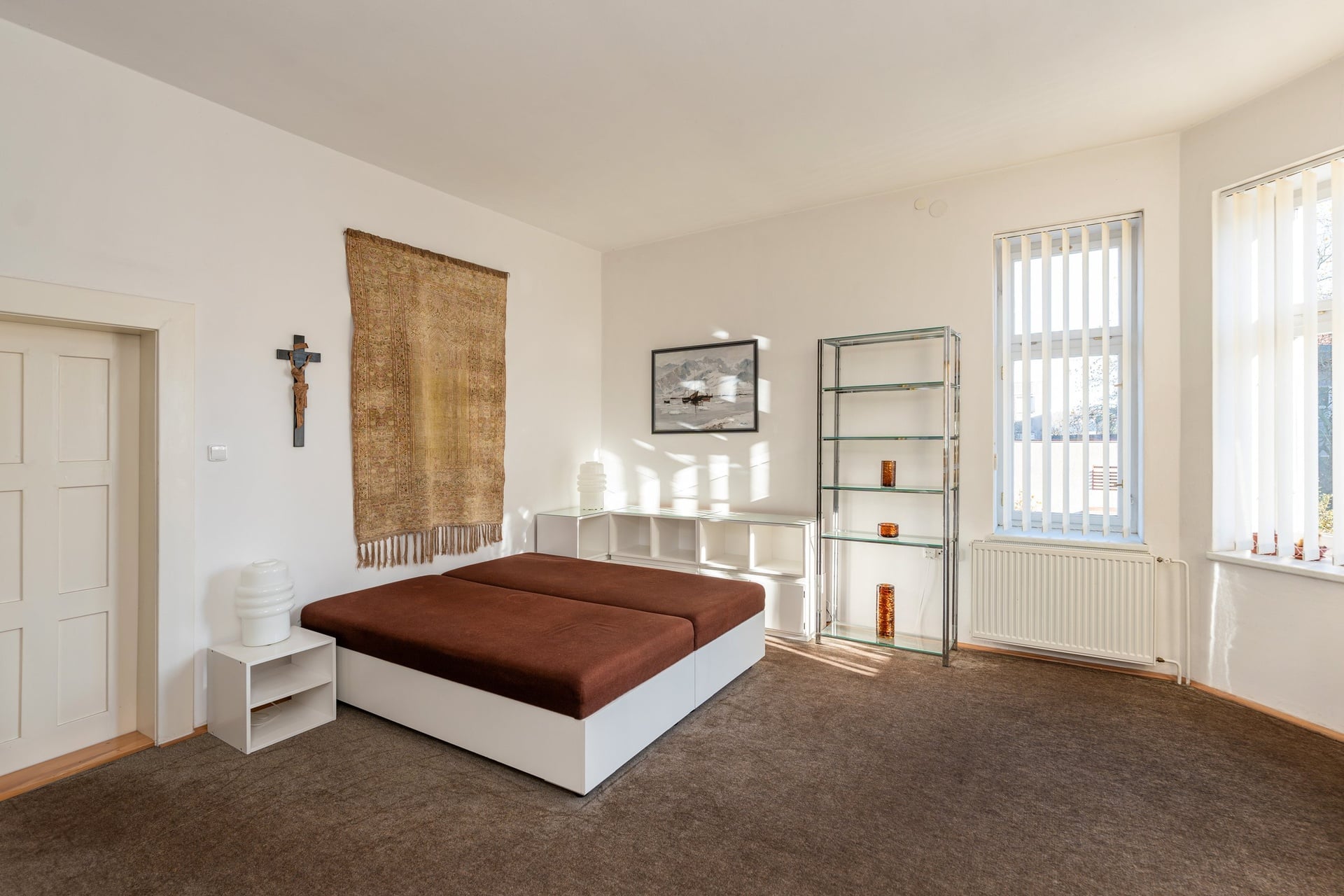 První patro disponuje stejnou plochou 121,10 m² a nabízí světlé, prostorné místnosti s vysokou variabilitou využití – vhodné pro soukromé apartmány, pracovny, ložnice nebo další funkční zóny. Citlivě zrekonstruované podkroví o ploše 72,16 m² přináší charakteristické prvky krovu a intimní atmosféru, což jej předurčuje pro privátní apartmá, ateliér, pracovnu či dětské nebo záložní pokoje. Kompletně podsklepený suterén poskytuje nadstandardní technické a úložné zázemí s širokými možnostmi dalšího využití.