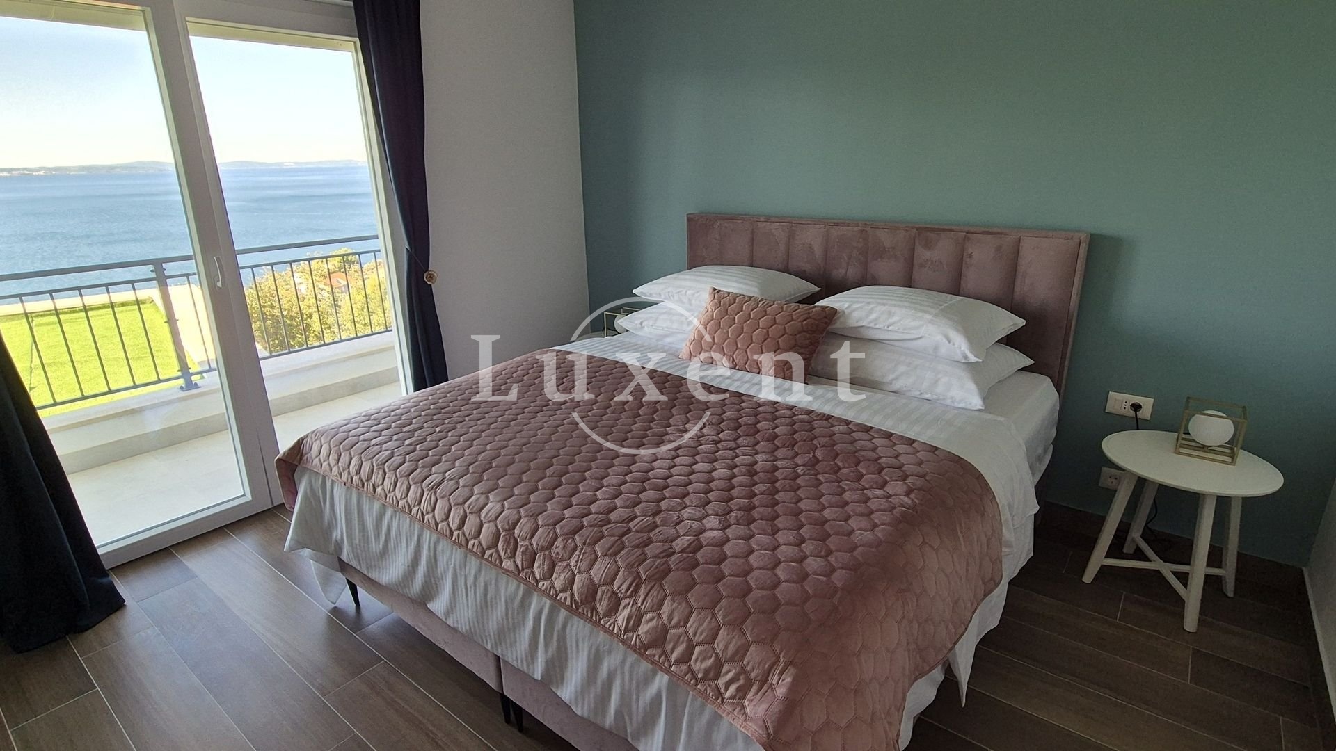 První patro je určeno pro klid a odpočinek – nachází se zde čtyři prostorné ložnice, každá s vlastní koupelnou a přímým vstupem na soukromou terasu s výhledem na moře. Díky poloze na vyvýšeném místě nabízí vila úchvatné výhledy, které umocňují pocit soukromí a výjimečnosti.