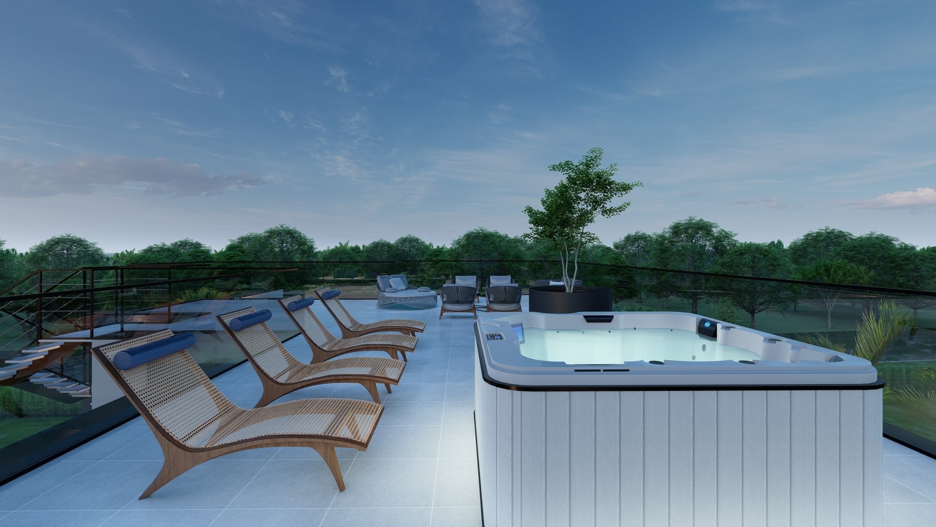 V přízemí vily se nachází velká ložnice s vlastní koupelnou, obývací pokoj propojený s jídelnou a kuchyní a vstup na venkovní terasu. Dále je zde technická místnost a další úložné prostory. V prvním patře jsou tři ložnice, z nichž každá disponuje vlastní koupelnou a vstupem na terasu s výhledem na moře. Kouzelná střešní terasa nabízí prostor k relaxování a trávení času s přáteli a rodinou, s překrásnými výhledy na celé pobřeží a možností umístění zde vířivky. Na zahradě je k dispozici vyhřívaný bazén.