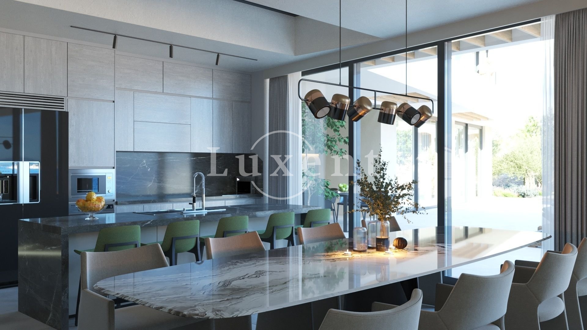 Exteriér vily nabízí výjimečné zázemí pro letní životní styl – prostorný bazén o velikosti 68,94 m² s plochou pro slunění, letní kuchyni a rozsáhlé terasy, které tvoří ideální prostředí pro rodinné oslavy i neformální setkání s přáteli. Celková kompozice domu zajišťuje dostatek soukromí, vysoký komfort a přímý kontakt s přírodou a mořem.