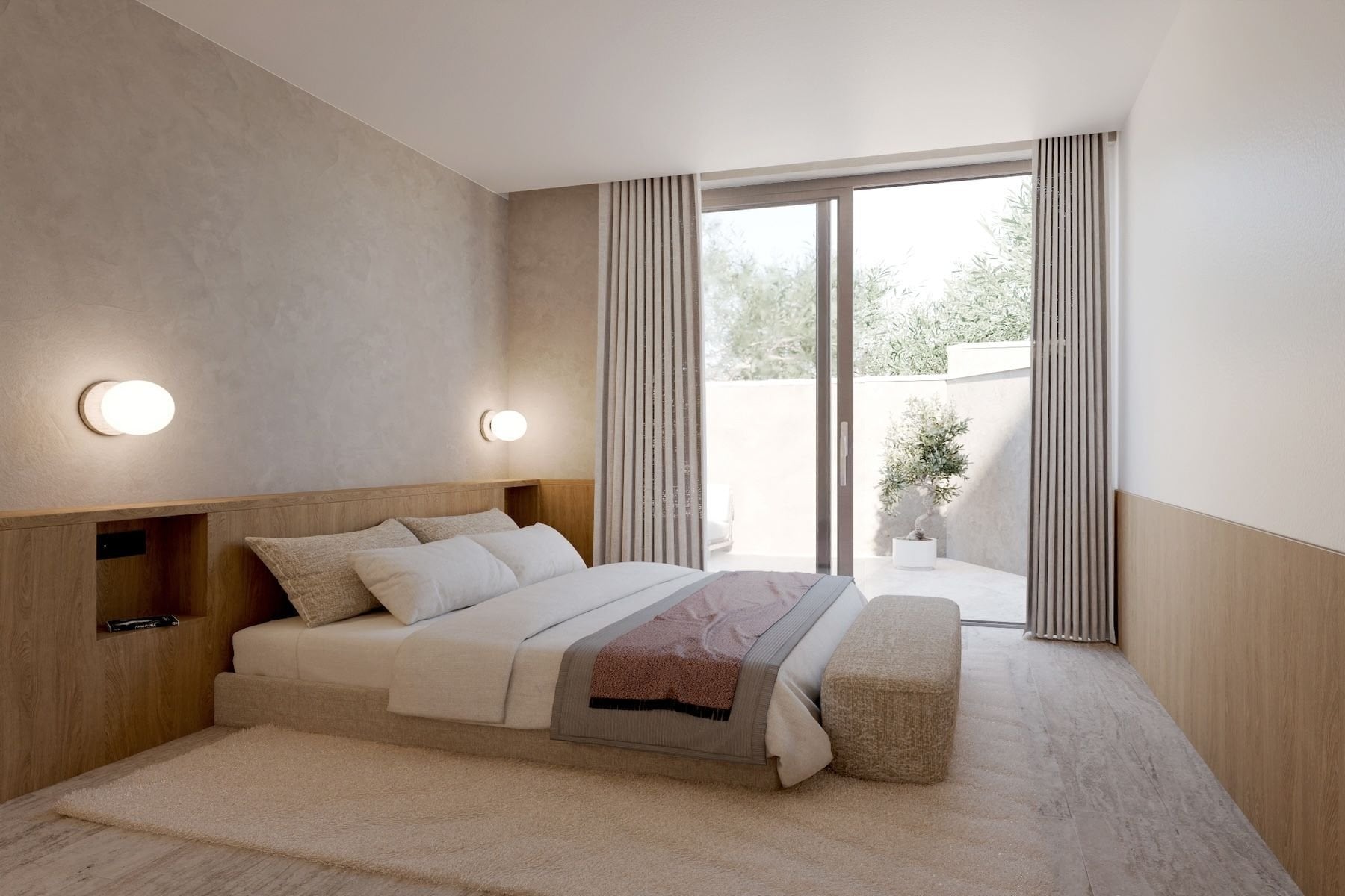 V prvním patře se nacházejí čtyři elegantní ložnice, z nichž každá má vlastní koupelnu a přístup na balkon nebo terasu. Hlavní ložnice orientovaná na jih je navíc vybavena samostatnou šatnou a nabízí nádherný výhled na moře.