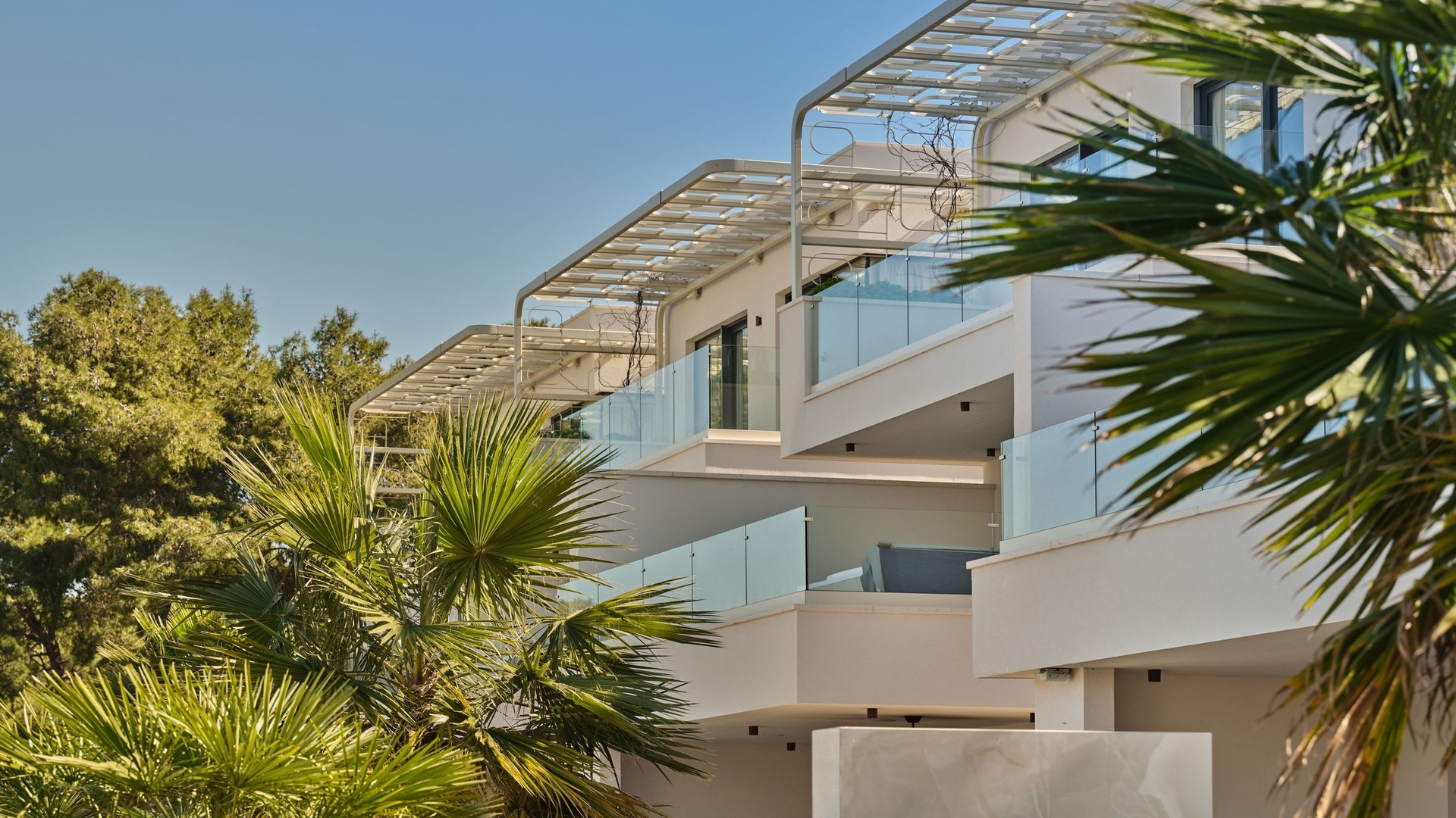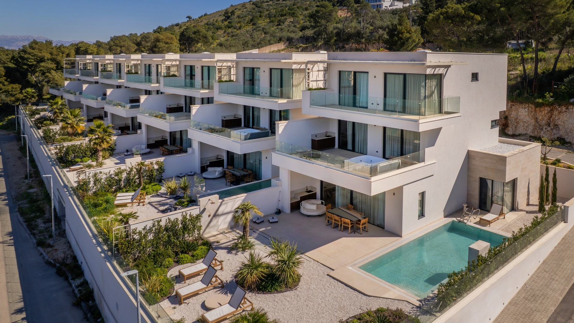 Ve druhém patře se nachází ložnice s vlastní koupelnou a přímým vstupem na terasu vybavenou venkovním nábytkem a jacuzzi. Třetí patro nabízí tři ložnice, každou s vlastní koupelnou, a vstup na terasu částečně krytou přírodní zelení, která vytváří jedinečnou atmosféru soukromí a klidu.