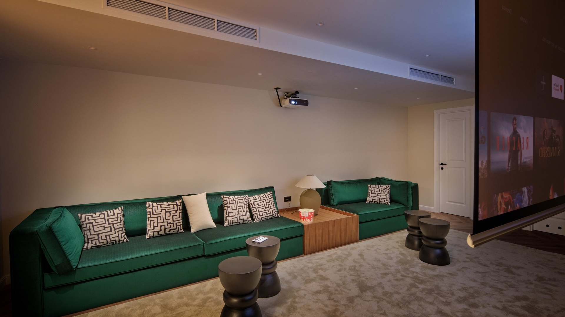Interiér vily je zařízen v hotelovém standardu a doplněn o nadstandardní vybavení, jako je vyhřívaný nekonečný bazén, jacuzzi, soukromá zahrada, domácí fitness, sauna, plně vybavená kuchyň a soukromé kino.