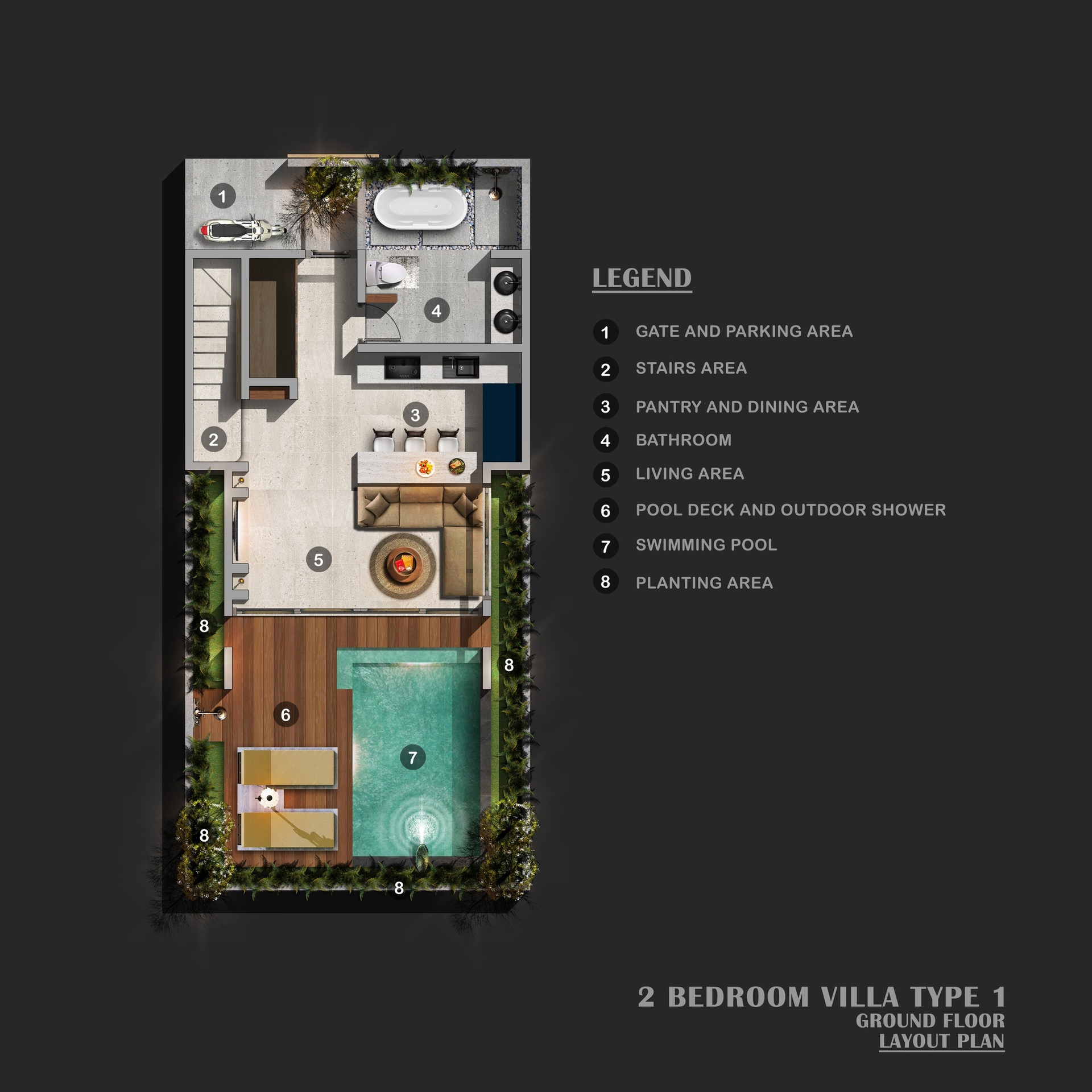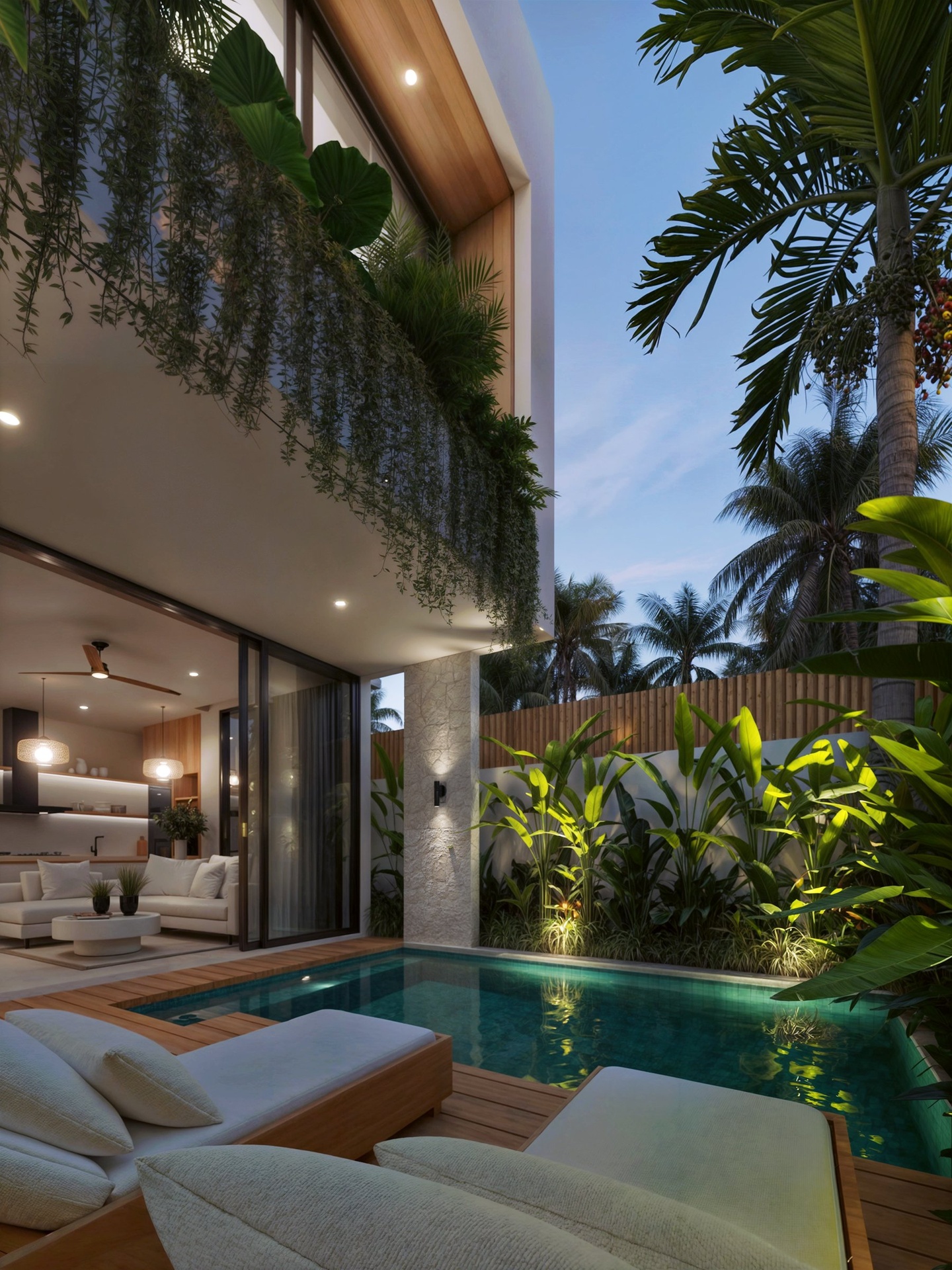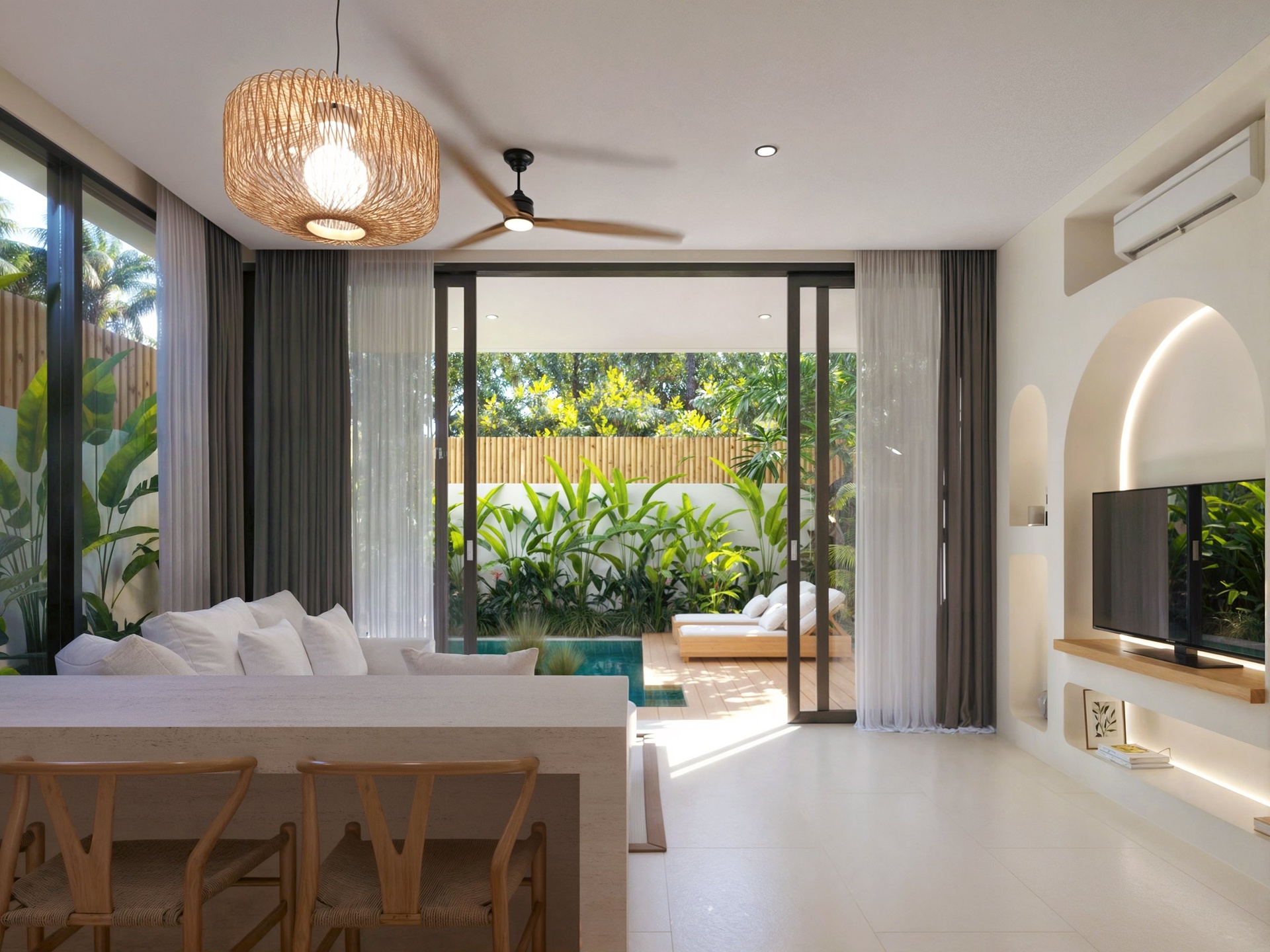 Představujeme vilu o dispozici 3+kk a celkové ploše 144 m², která je součástí komorního projektu The Bayuh Oases – butikového souboru šesti soukromých vil situovaných v klidné rezidenční oblasti Tumbak Bayuh, v blízkosti oblíbené lokality Canggu.