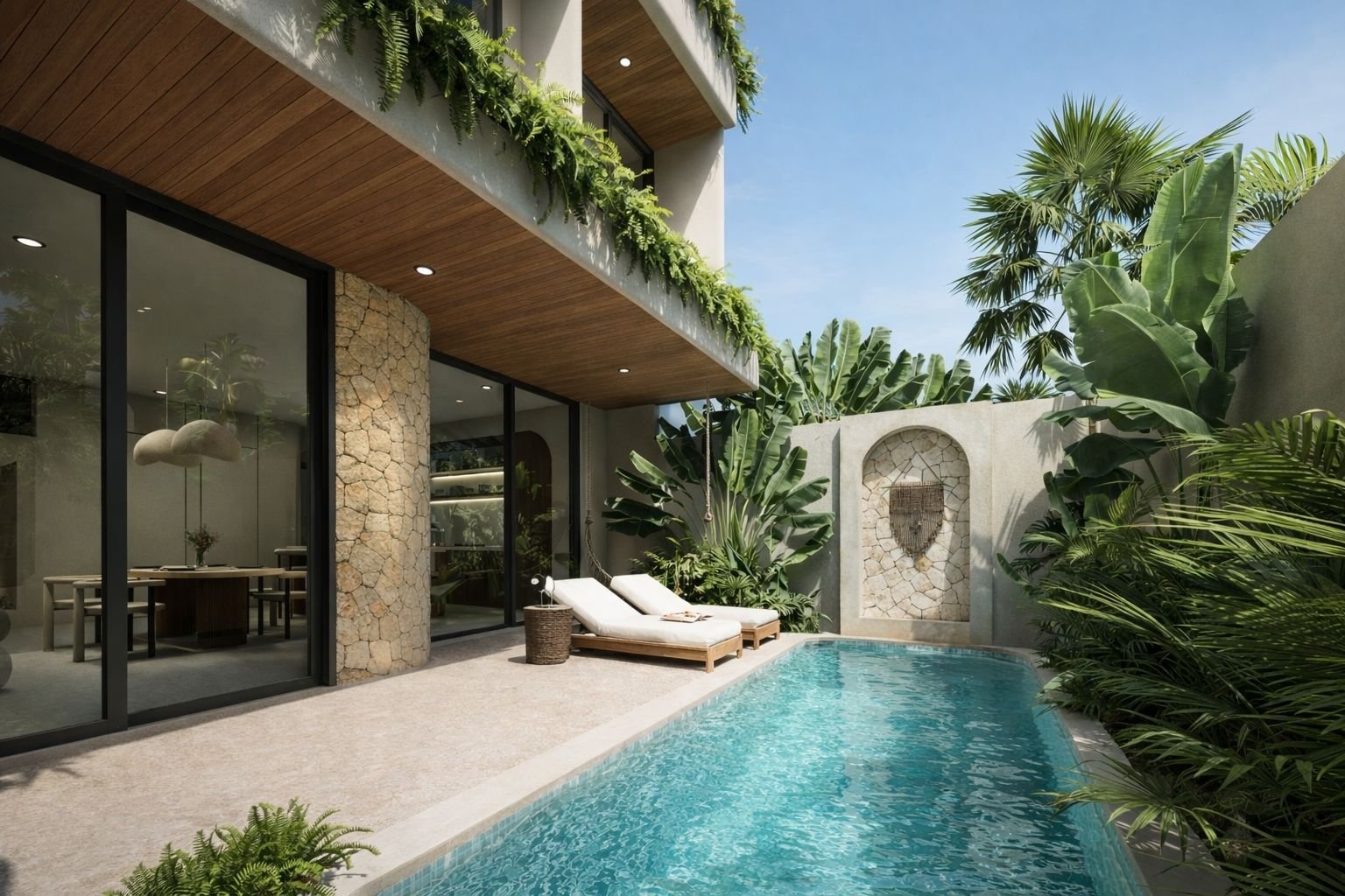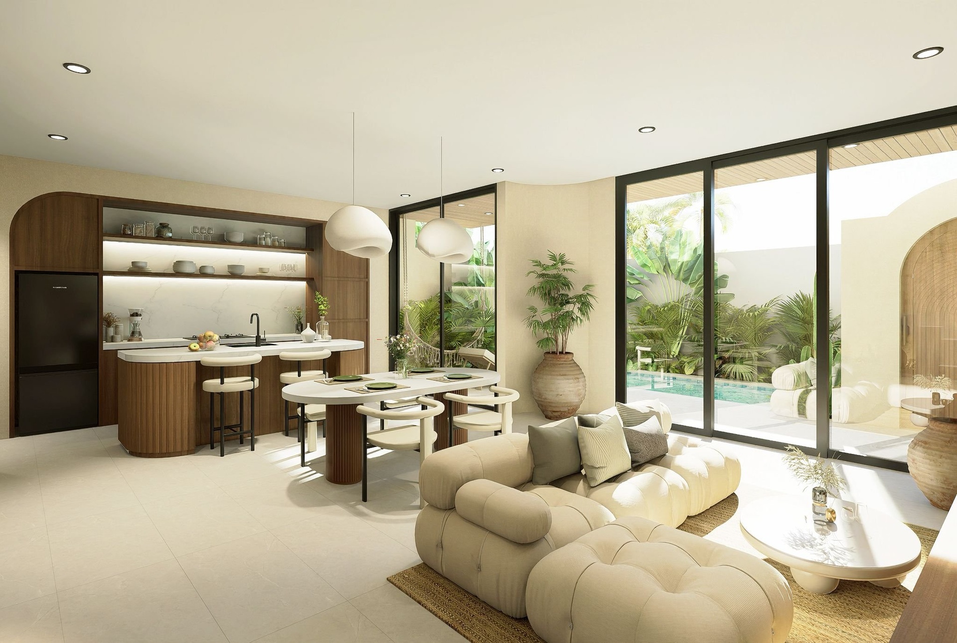 Vily o dispozici 3+kk jsou navrženy s důrazem na jedinečný interiérový design, kvalitní materiály a plně vybavený standard. Každá vila disponuje vlastním soukromým bazénem a střešní terasou s jacuzzi, čímž nabízí ideální zázemí jak pro vlastní užívání, tak pro krátkodobý pronájem. Projekt citlivě propojuje evropskou architektonickou preciznost s tropickou atmosférou Bali.