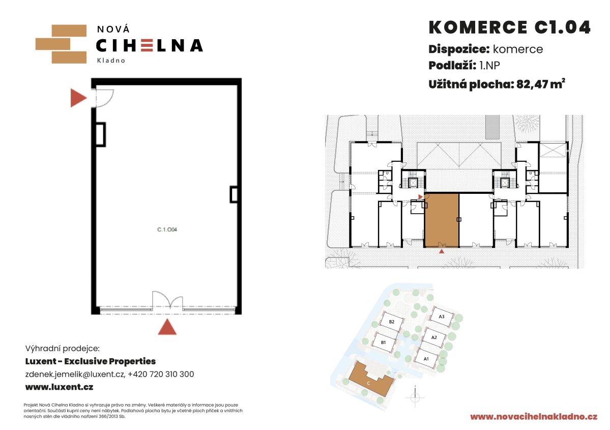 Nabízíme k prodeji komerční jednotku o užitné ploše 82,47 m2 v mimořádně úsporném developerském projektu Nová Cihelna Kladno vznikajícím v městské čtvrti Kladno – Rozdělov.
