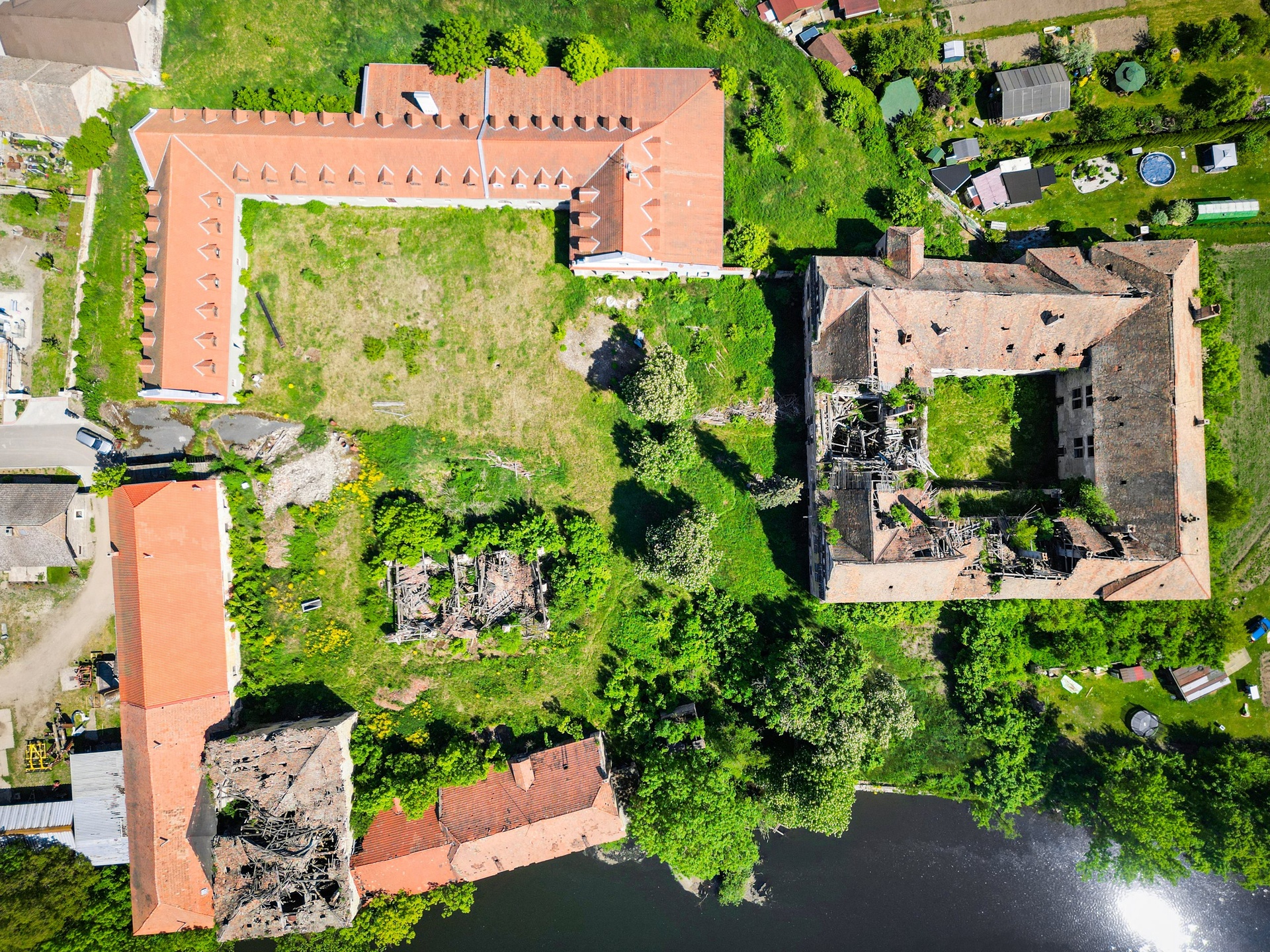 Největší z hospodářských budov o užitné ploše cca 2.000 m² již byla částečně rekonstruována. Dispozice této budovy jsou určené pro občanskou vybavenost (vhodné například pro ubytovací či zdravotnické zařízení), stejně tak i ostatní budovy v areálu (sýpka a chlév) jsou určené k občanské vybavenosti. Rozlehlé klenuté prostory v přízemí nabízejí možnost vybudovat zde například restauraci, konferenční sály, fitness studio a lázně. Je zde příprava na impozantní bazén. Půdní prostory s arkýři lze adaptovat na hotelové pokoje nebo byty.