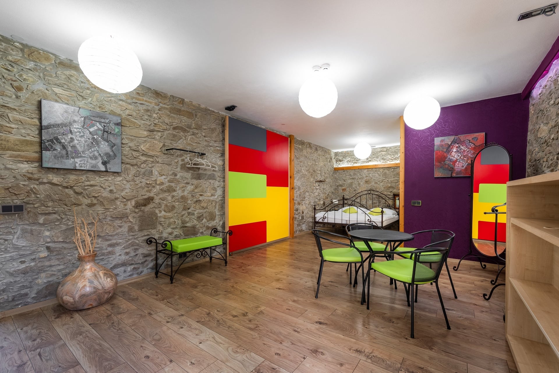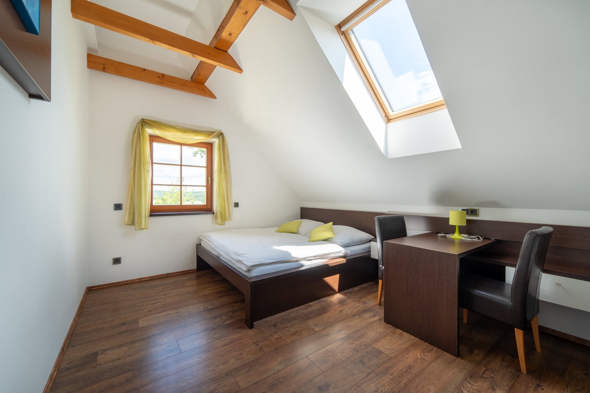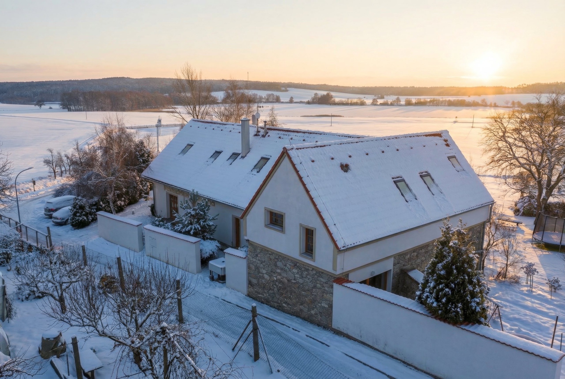 Dům se skládá ze dvou samostatných částí s ubytovací kapacitou 24 lůžek. Hlavní část domu v 1. NP: restaurace s barem, dva typy kuchyně, technické a sociální zázemí, spojovací chodby a další. Ve 2. NP je pak 5 pokojů vždy s koupelnami, prostorná chodba a točité schodiště. V druhé části nemovitosti jsou dvě samostatná designová studia rovněž s koupelnami a vlastním soukromím. Každé má svůj el. obvod a lze v něm vytvořit nezávislé studio s kuchyňkou, případně designový mezonet se samostatným vstupem. Ke spodnímu studiu náleží terasa 18 m² a je zde příprava na wellnes se saunou. V 1. i 2. NP lze instalovat klasický krb. Bez jakýchkoliv úprav se nemovitost může stát praktickou investicí firem i rodinným zázemím či chalupou.