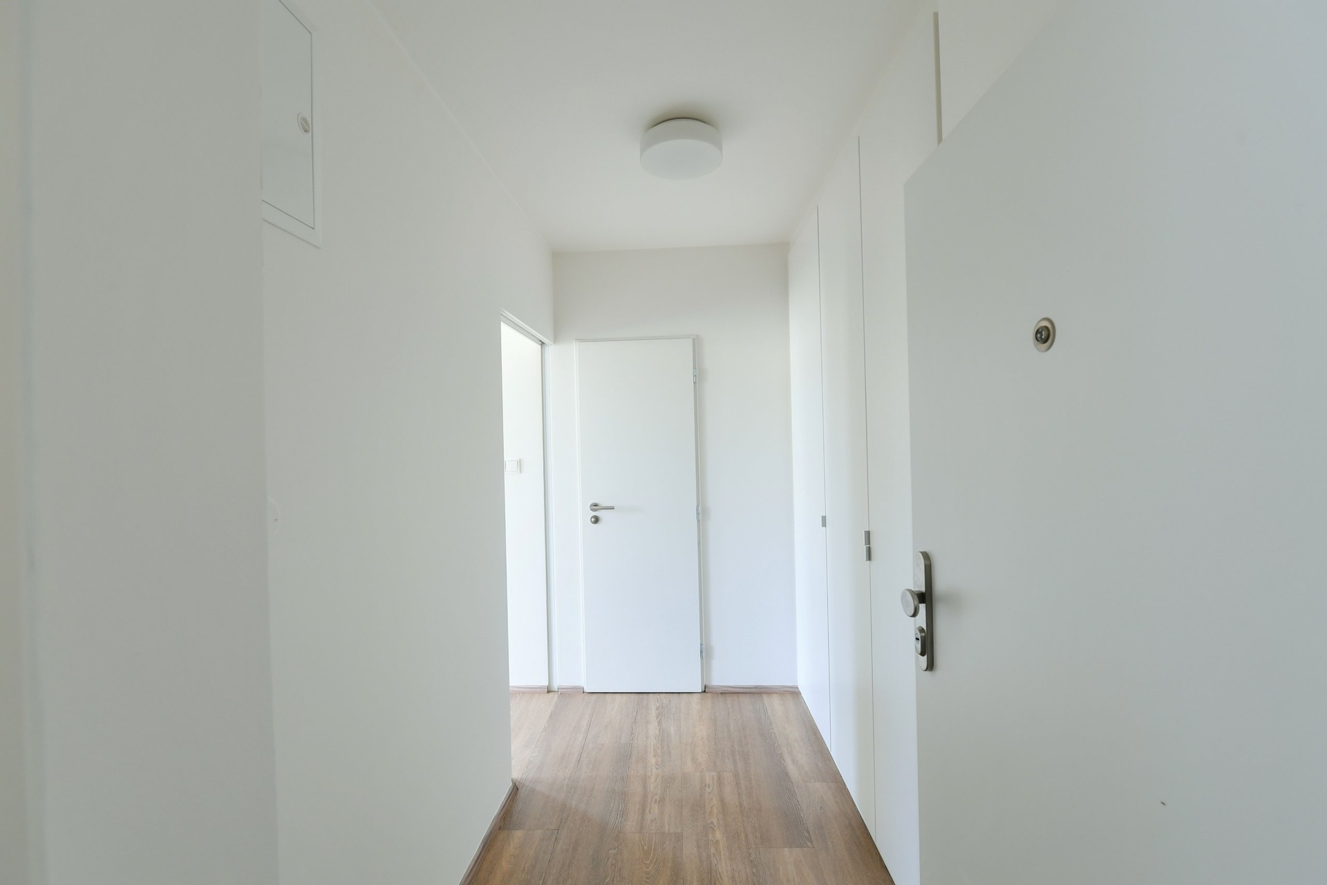 Dispozice nabízí vstupní chodbu, ložnici, obývací pokoj s kuchyňským koutem vybaveným všemi spotřebiči – indukční varnou deskou, digestoří, horkovzdušnou troubou a lednicí s mrazákem, koupelnu se sprchovým koutem a umyvadlem a toaletu. Součástí vybavení je i pračka se sušičkou.