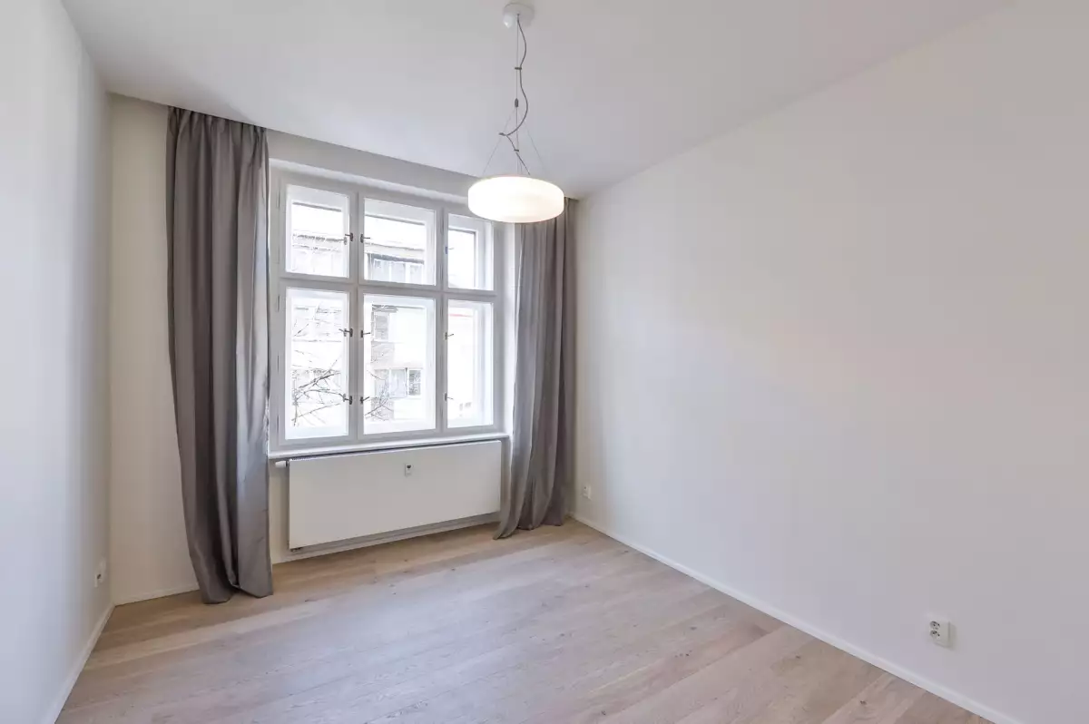 Rekonstrukce bytu proběhla ve vysokém standardu a byly zde použity nejkvalitnější materiály. Dřevěné dubové podlahy, nová okna s dvouvrstvým sklem, vestavěné skříně.