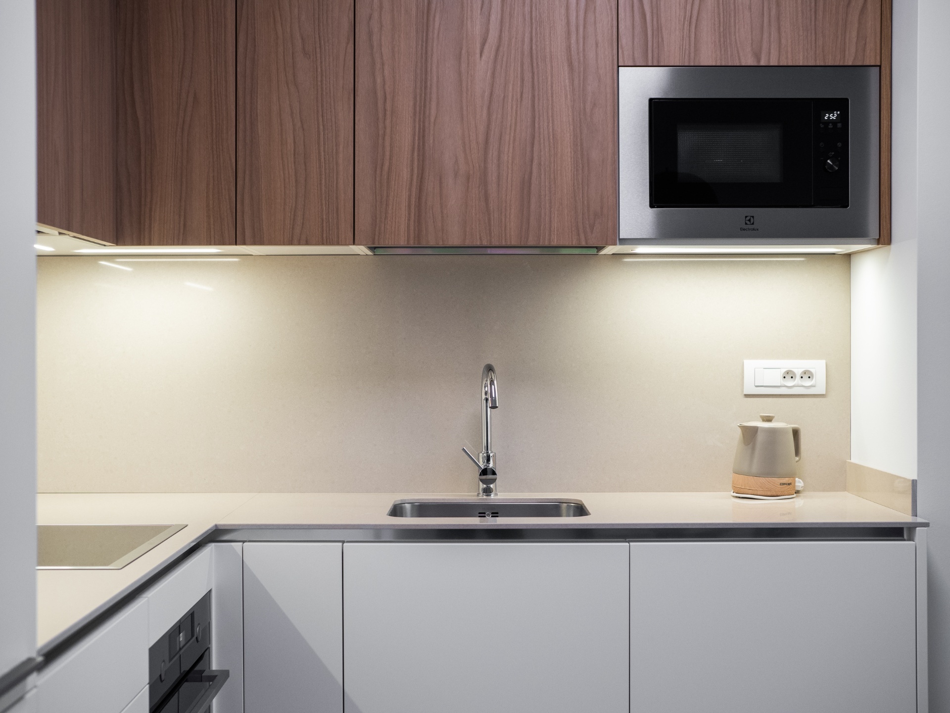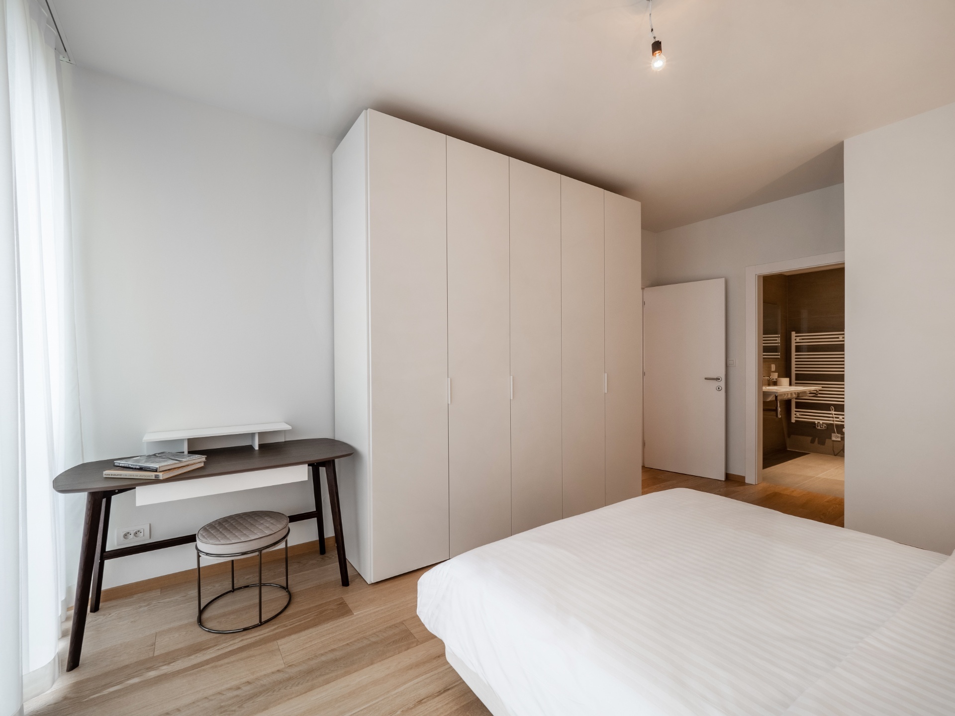 Dispozice zahrnují prostornou a světlou obývací místnost, moderní kuchyňský kout nadstandardně vybavený všemi spotřebiči, ložnici s vlastní koupelnou s vanou, sprchovým koutem, toaletou a bidetem, předsíň a oddělenou toaletu s pračkou.