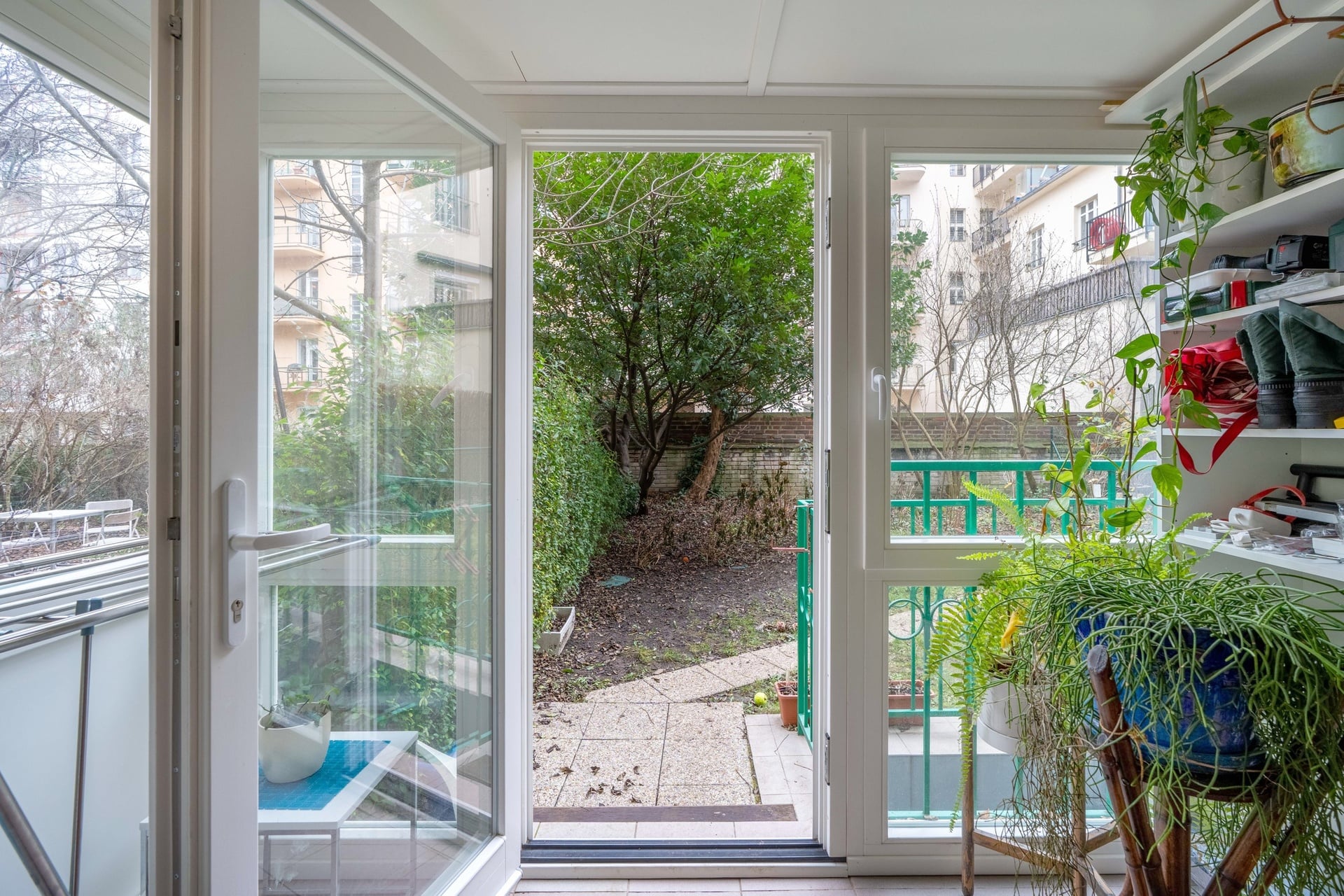Dispozice zahrnuje obývací pokoj s plně vybaveným kuchyňským koutem a přímým vstupem na předzahrádku. Dále hlavní ložnici s en-suite koupelnou vybavenou sprchovým koutem, masážní vanou, bidetem a toaletou, druhou koupelnu se sprchovým koutem a toaletou a samostatnou pracovnu či druhý pokoj s přístupem do zahrady o výměře cca 80 m², což poskytuje ideální venkovní zázemí a příjemné soukromí přímo u bytu.