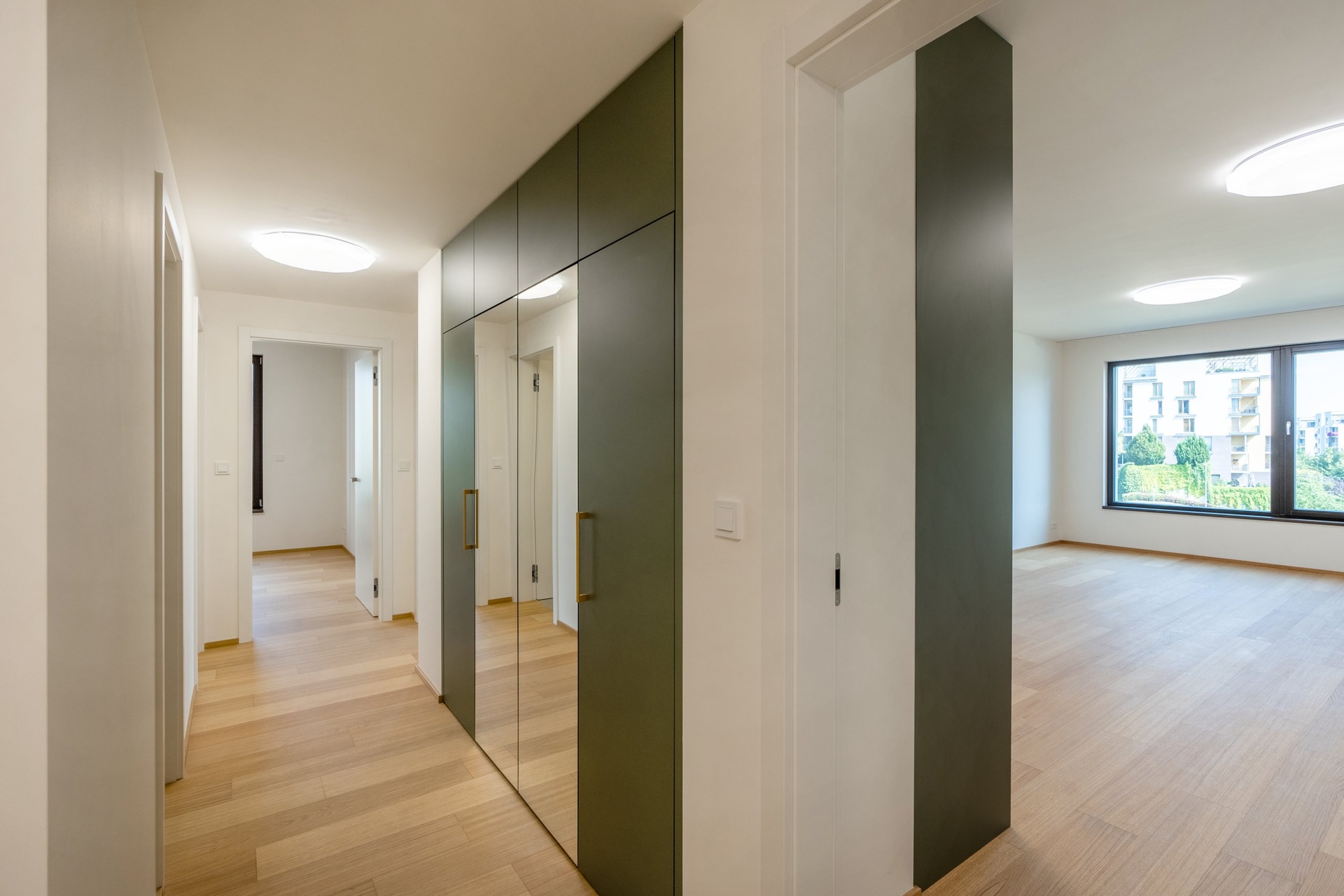 Byt bude částečně vybaven vestavěnými skříněmi. Kuchyňská linka včetně spotřebičů je samozřejmostí. Pro více informací o interiéru a dalších dostupných bytech v projektu kontaktujte makléře.