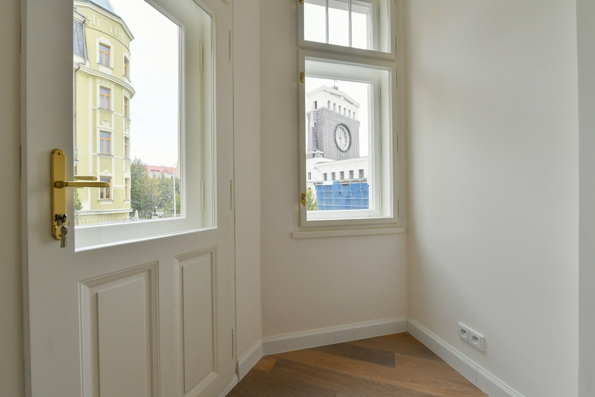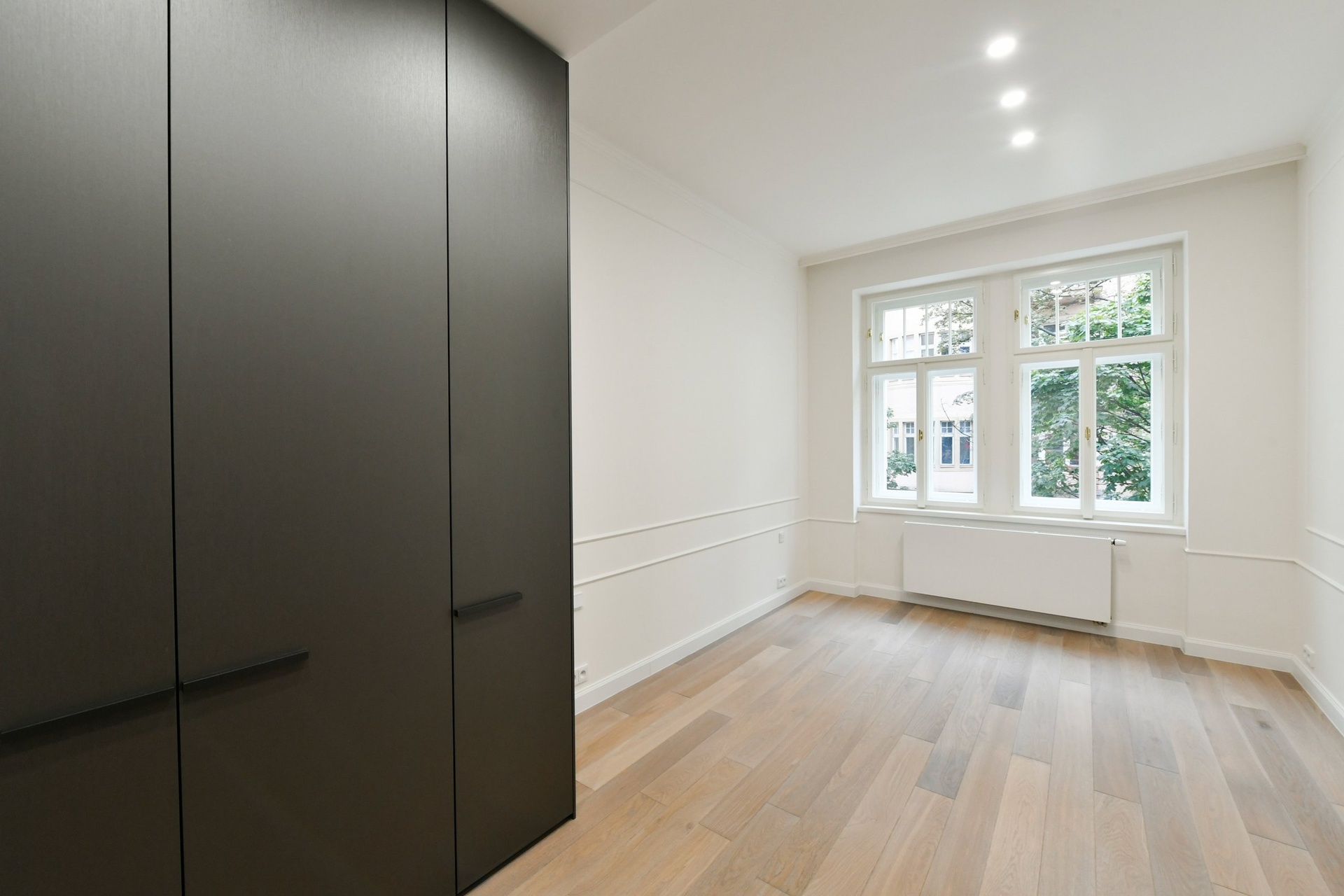 Rekonstrukce bytu proběhla ve vysokém standardu a byly zde použity nejkvalitnější materiály. Repasované dřevěné parkety, nová okna s dvouvrstvým sklem. Klimatizace ve všech místnostech.