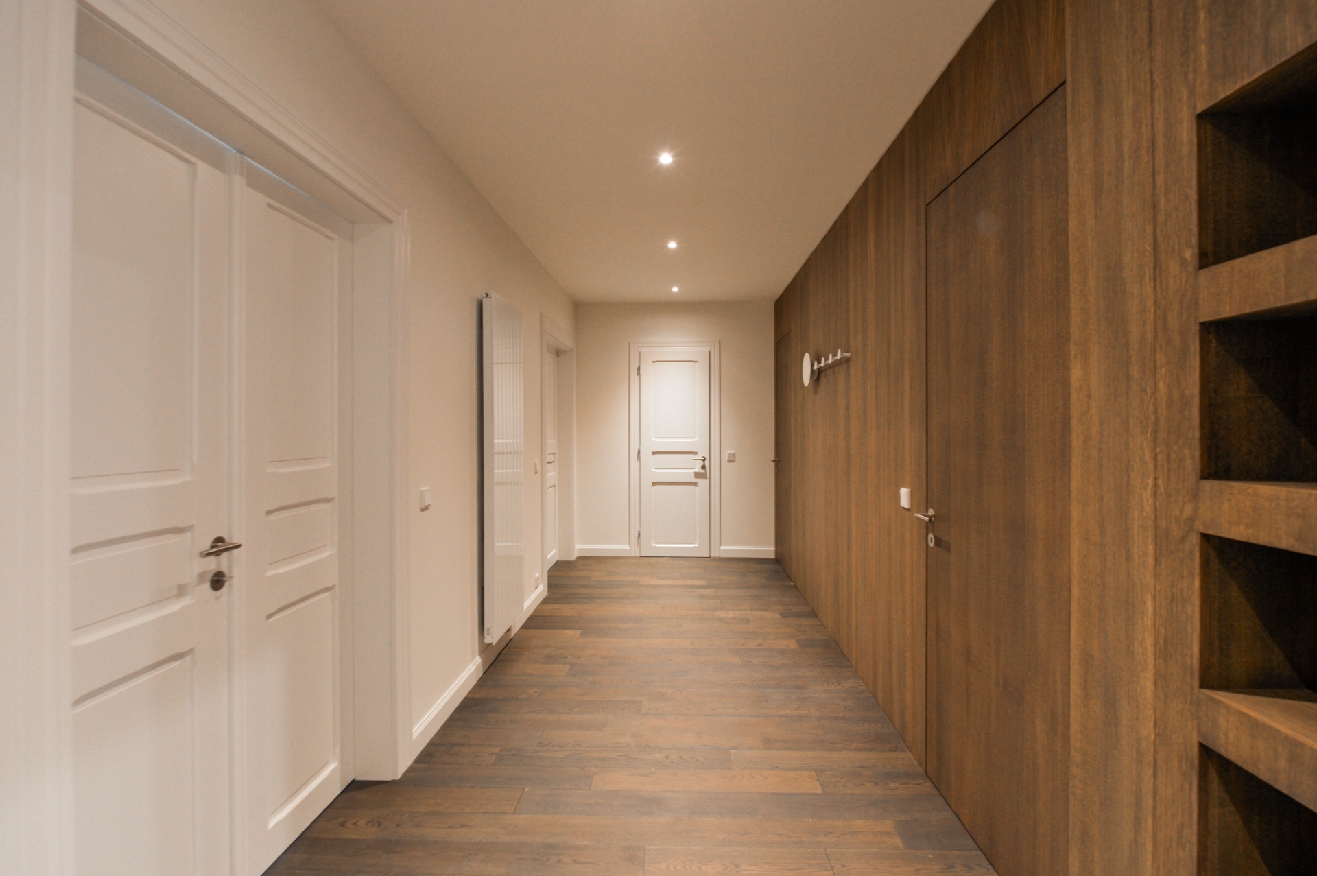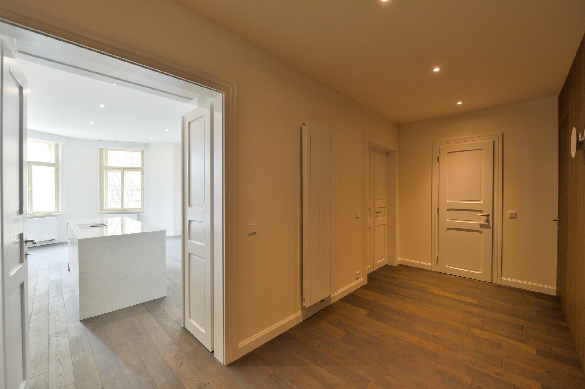 Rekonstrukce bytu proběhla ve vysokém standardu a byly zde použity nejkvalitnější materiály. Dubové dřevěné podlahy a kvalitní velkoformátová dlažba. Nová okna s dvouvrstvým sklem. Klimatizace ve všech místnostech. Podlahové vytápění v koupelnách. Vestavěné skříně a množství úložných prostor. Byt lze kompletně dovybavit nábytkem za vyšší nájemné.