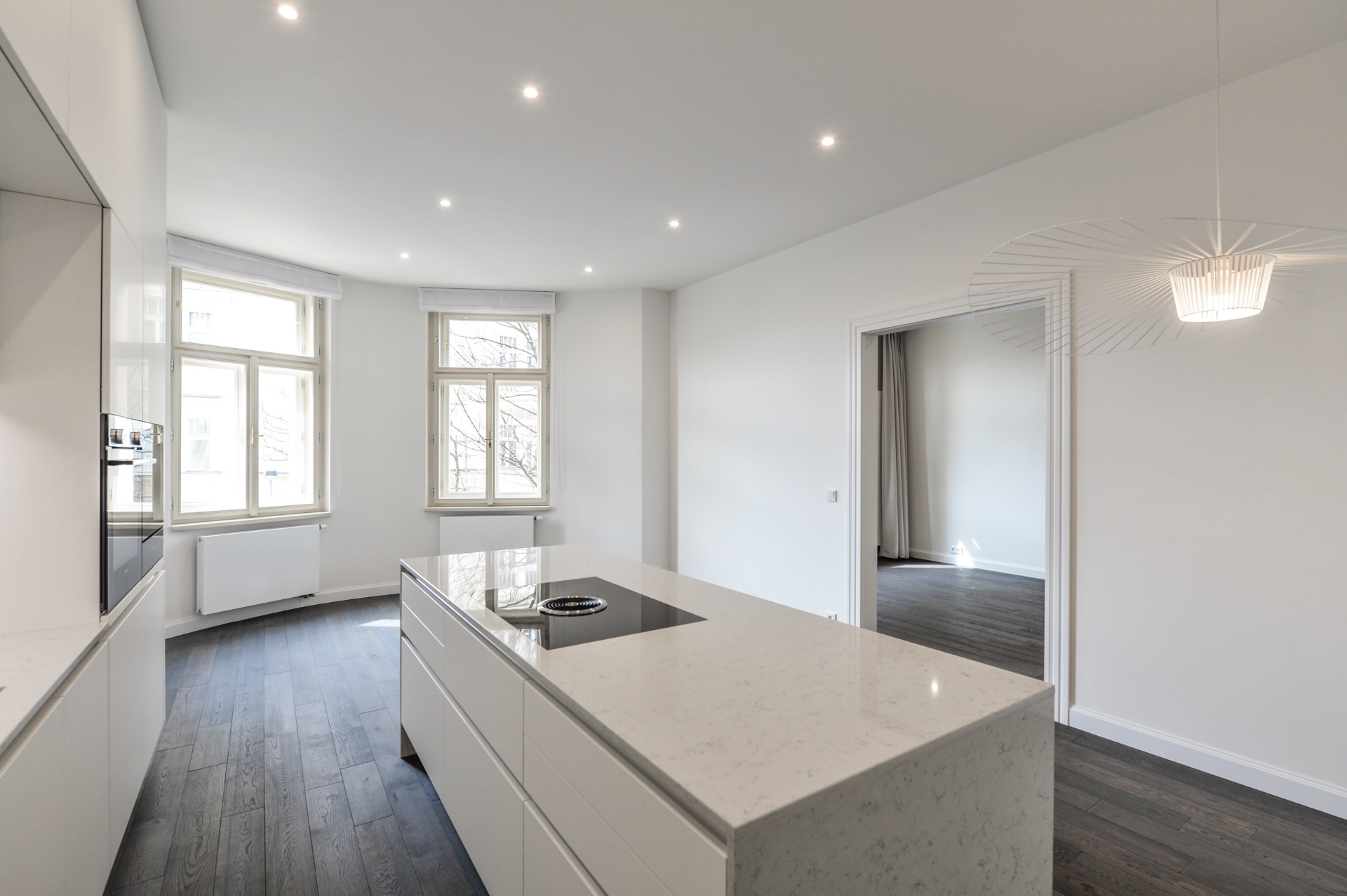 Nabízíme k pronájmu byt 4+kk o užitné ploše 137 m² ve 2. patře historického činžovního domu s výtahem v lukrativní a klidné lokalitě Vinohrad na Praze 3. Součástí je balkón s výhledem na náměstí Jiřího z Poděbrad a kostel Nejsvětějšího srdce Páně. Celý dům prošel citlivou rekonstrukcí, byly zde zachovány původní prvky secesního stylu. K bytu náleží garážové stání a sklep které jsou zahrnuty v ceně.