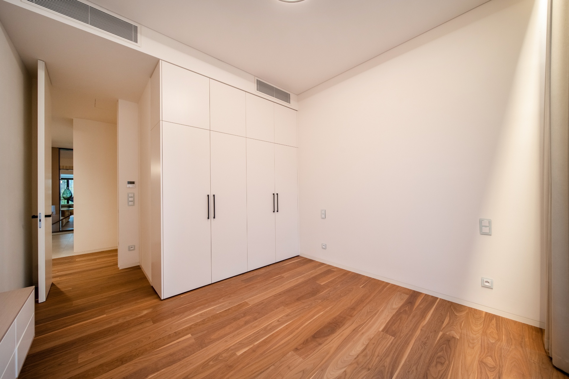 Dispozice nabízí v přízemí vstupní halu s lounge prostorem, kuchyňský kout nadstandardně vybavený veškerými kuchyňskými spotřebiči a příjemným posezením s výhledem a vstupem na oddělenou terasu a prostorný obývací pokoj s kvalitní sedací soupravou. Dále master ložnici disponující vstupem na zahradu, walk-in šatnou a privátní koupelnou s vanou, sprchovým koutem a toaletou, dvě ložnice s vestavěnými skříněmi disponující vlastními vstupy na terasu a zahradu, společnou koupelnu se sprchovým koutem a toaletou a oddělenou toaletu pro hosty.