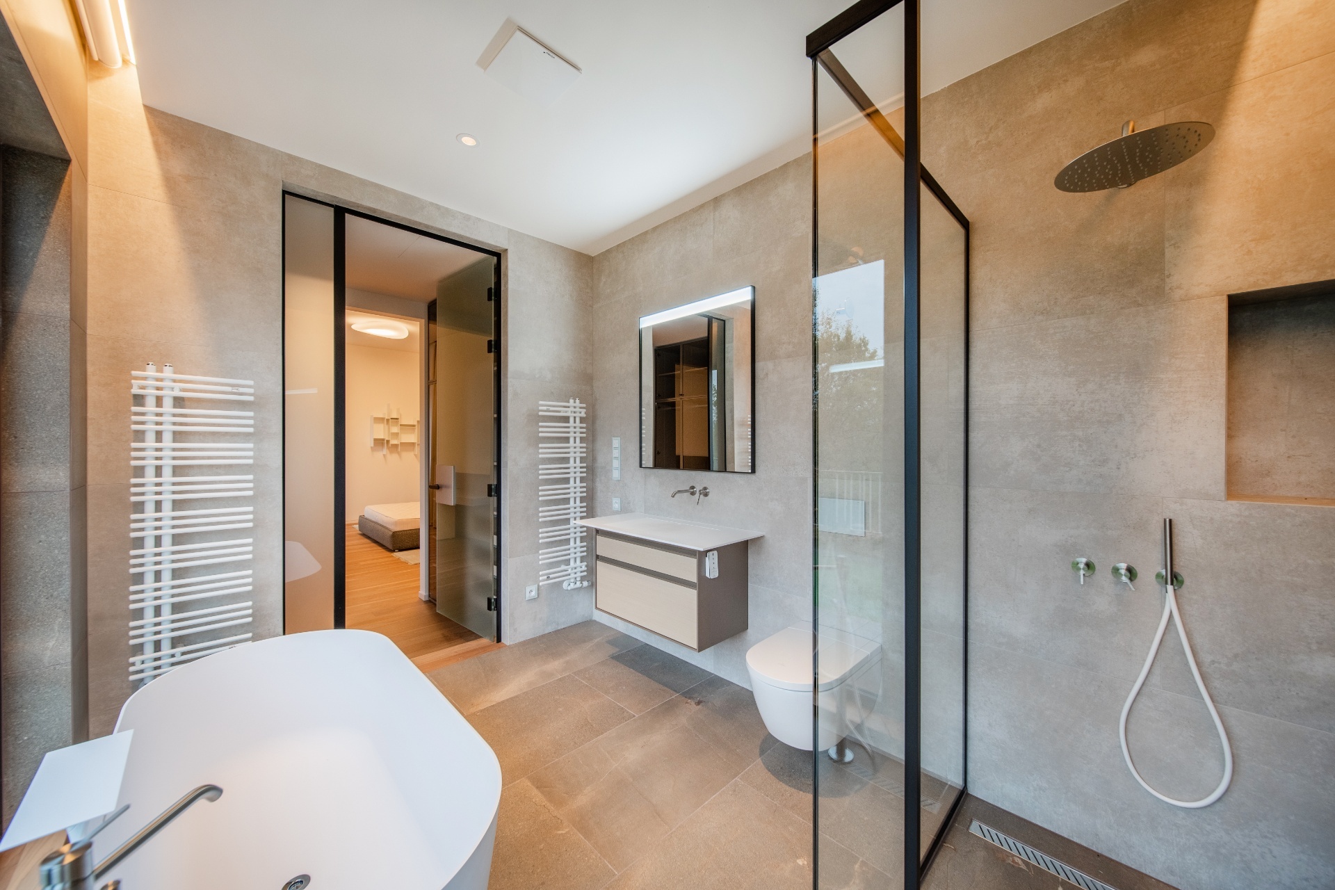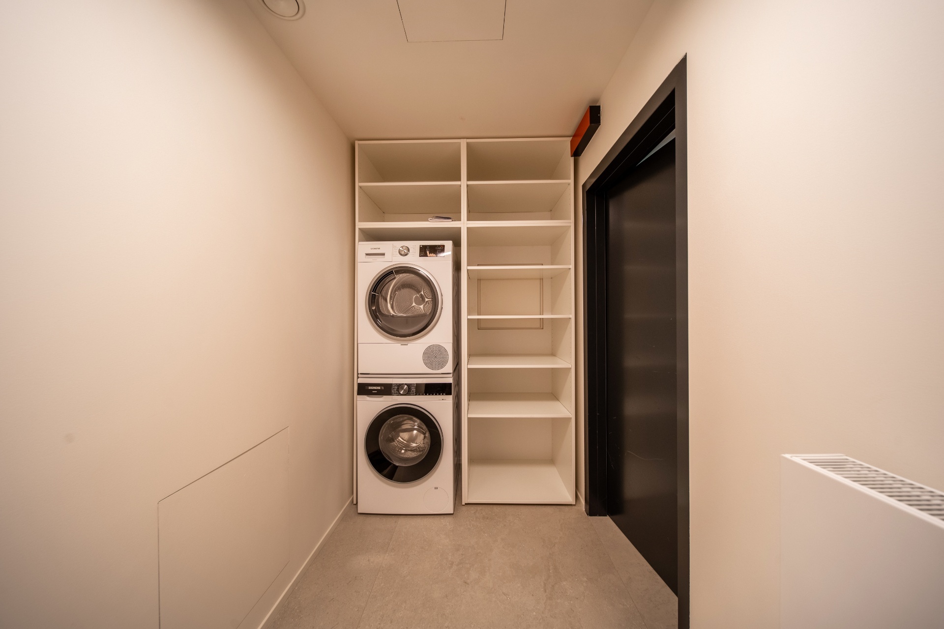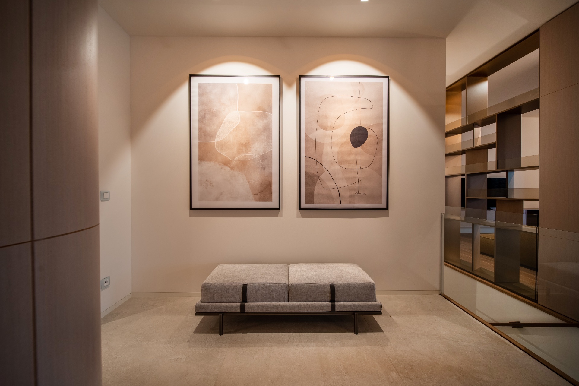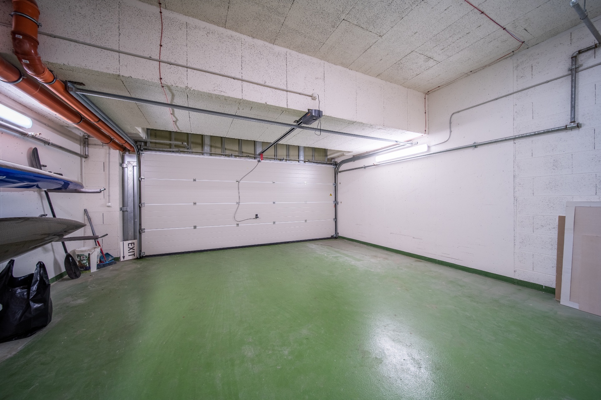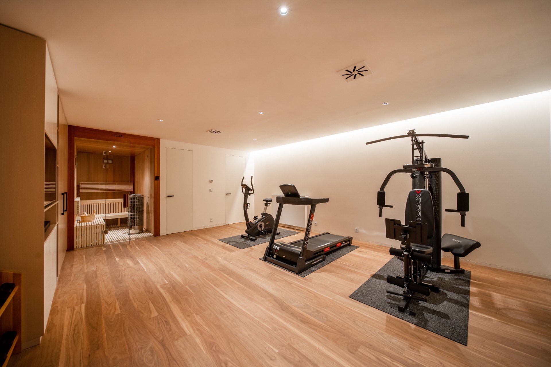 V prvním podzemním podlaží townhousu se nachází sauna, tělocvična, koupelna se sprchovým koutem a toaletou, sklepní místnost a přímý vstup do privátní garáže pro dva vozy.