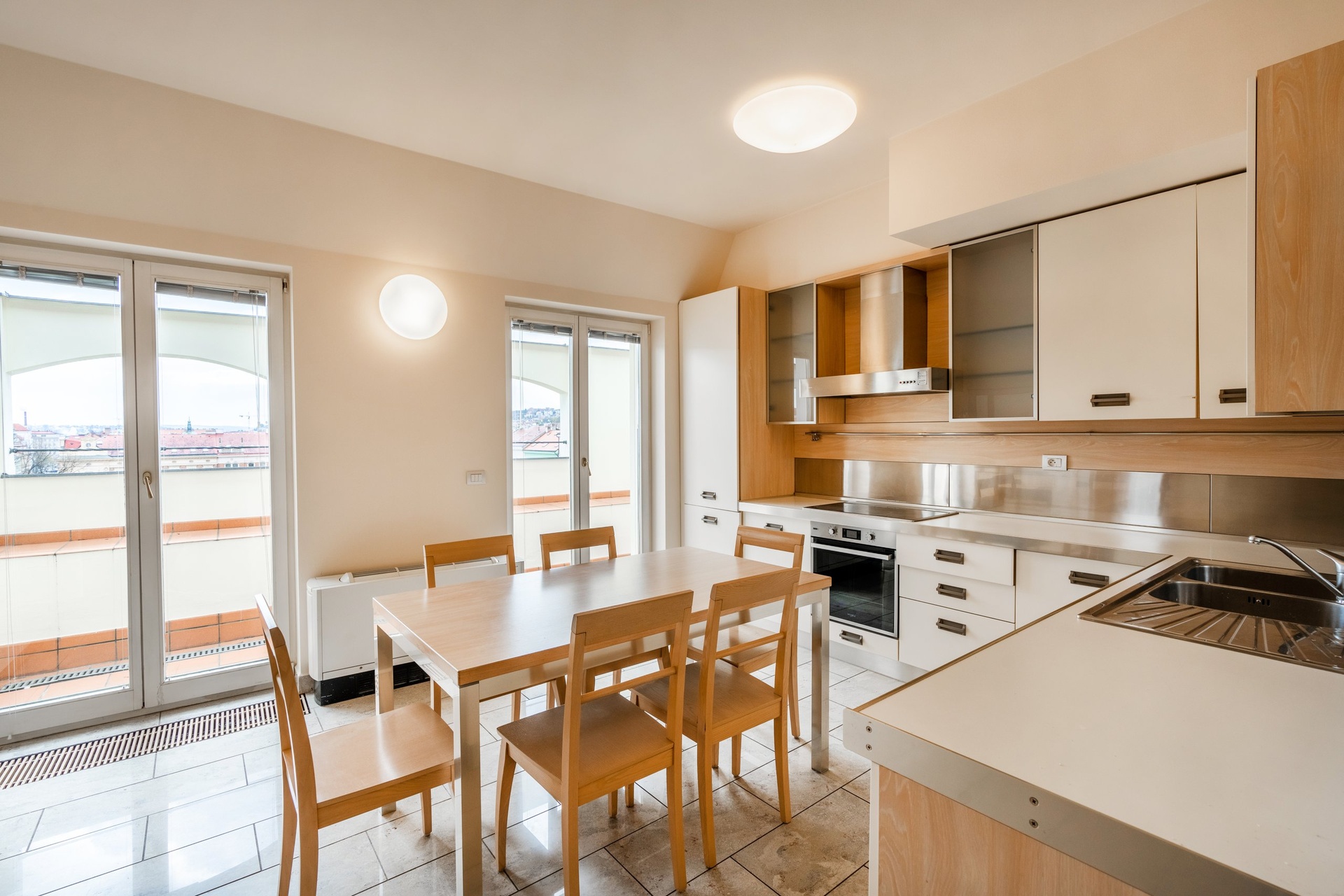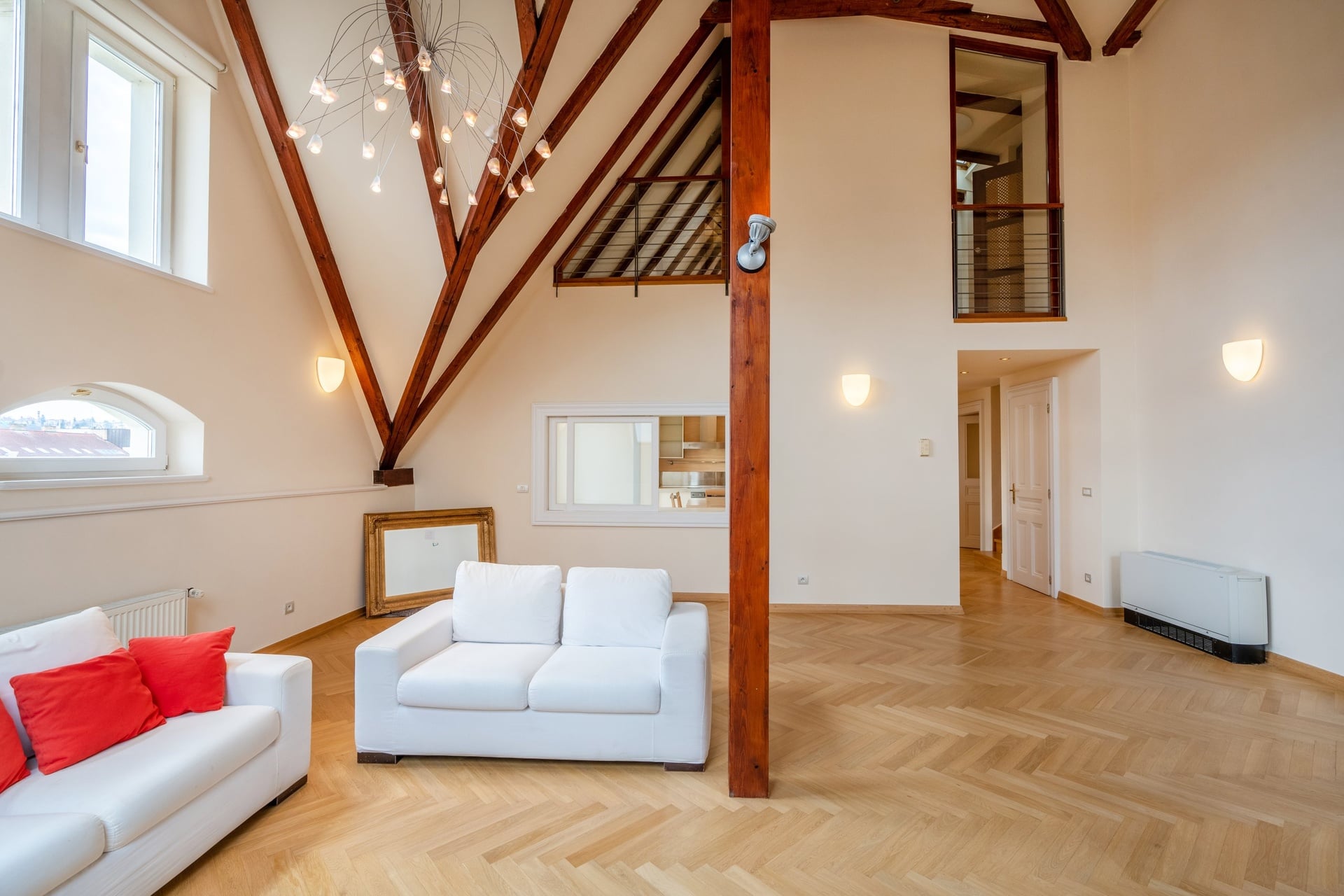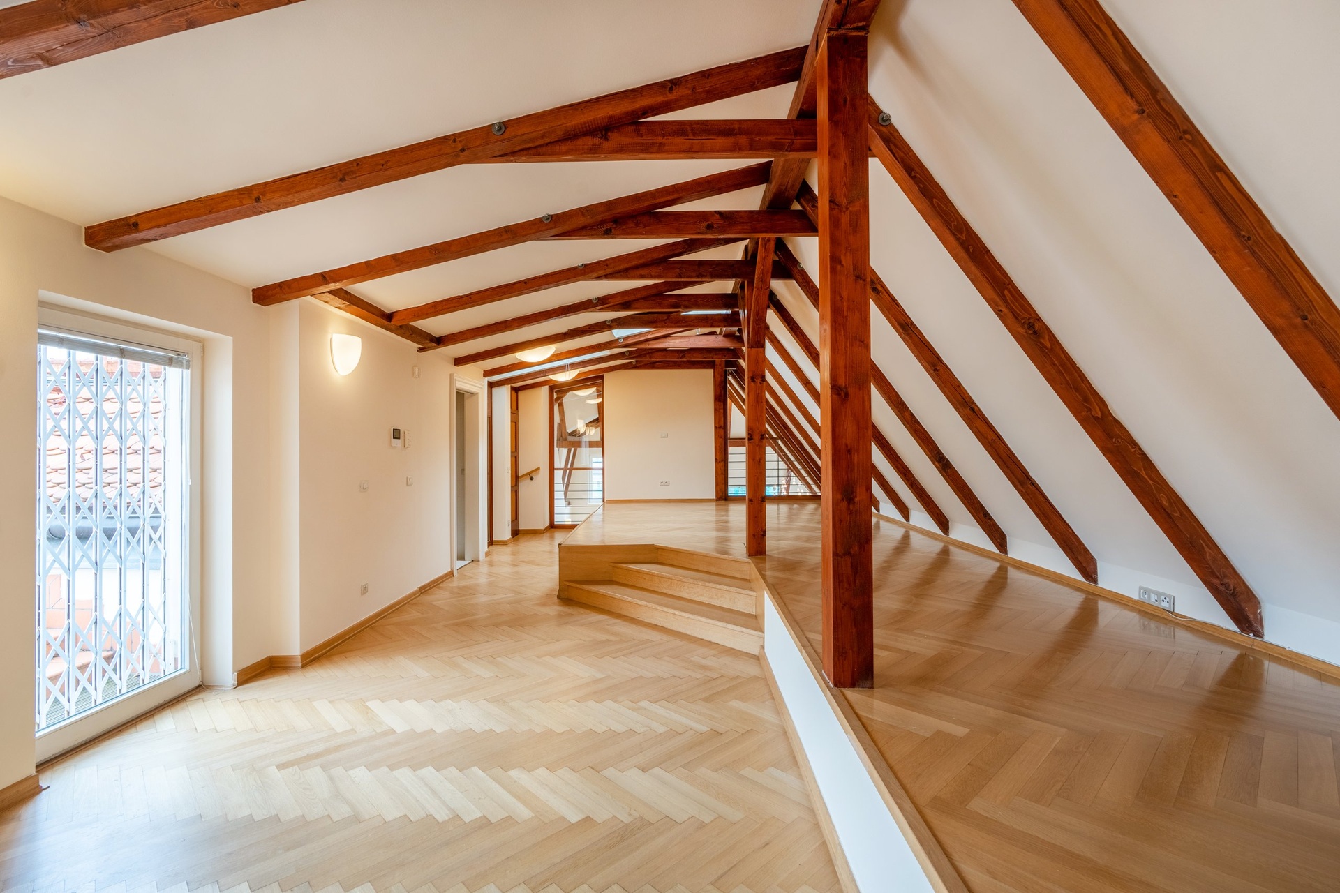 Nabízíme k pronájmu unikátní mezonetový byt 5+1 o obytné ploše 286 m² s terasou ve vyhledávané lokalitě na na Malé Straně. Byt je situován v 5. a 6. patře historického činžovního domu z 19. století, který prošel kompletní rekonstrukcí, v rámci které byl mimo jiné vybudován podzemní parking. Parkování je k dispozici za příplatek. Budova má velmi reprezentativní vstup a stejně jako v každé exkluzivní residenci je i zde recepce.