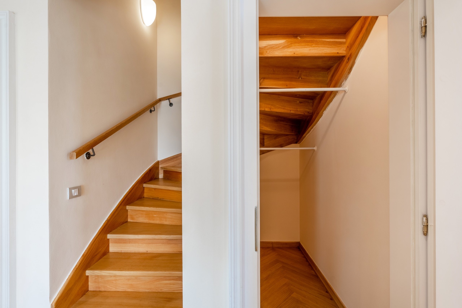 Dispozice bytu zahrnují v přízemí obývací místnost, kuchyň kompletně vybavenou všemi spotřebiči, tři ložnice, z nichž jedna disponuje vlastní šatnou a koupelnou s vanou, bidetem a toaletou, dále koupelnu s toaletou, bidetem a vanou a oddělenou komoru.