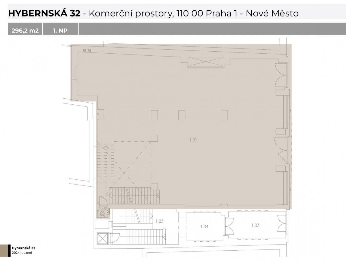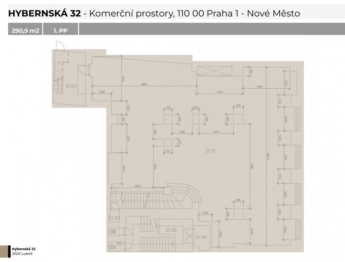 Nabízíme k pronájmu prostorné komerční prostory na prestižní adrese Hybernská 32, Praha 1, které se rozkládají od 2. podzemního podlaží až po 1. nadzemní podlaží o celkové pronajímatelné ploše 526 m2. Po dohodě existuje možnost rozšíření i o 2. NP (mezanin, + 239 m2 ). Prostory prošly kompletní rekonstrukcí jako jsou hlavní rozvody, byl zaveden moderní systém vzduchotechniky/klimatizace (vlastní okruh) a bezpečnostní systém. Prostor tak splňuje současné standardy a je připravena k okamžitému komerčnímu využití.