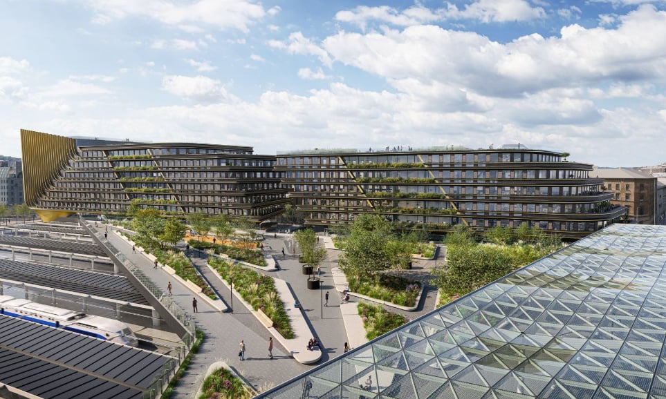 Projekt vyniká svým ekologickým přístupem - nadzemní platforma je z velké části pokryta zelení, včetně trávníku, keřů, stromů a květin. Tato zelená plocha významně přispívá ke zlepšení mikroklimatu v centru města a zároveň slouží k zachytávání a opětovnému využívání dešťové vody pro zavlažování.